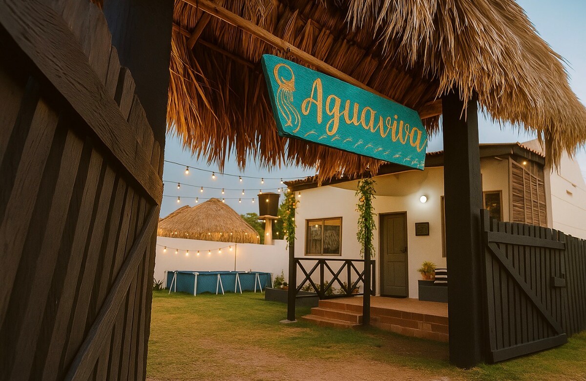 Agua viva cabaña frente al mar A/C, piscina