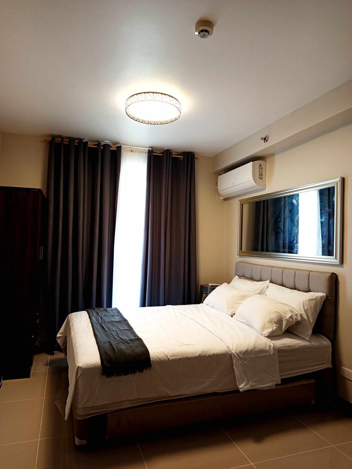 Comfy, accessible, and aesthetic condo studio unit near Mactan Cebu International Airport 24 sqm condo unit with balcony Oceanview with Queen-sized bed • can fit 4-6 pax • extra foam mattress and extra blanket provided • free pool access for 2, paid parking inside Bathroom with: • shower, heater, bidet • shampoo | conditioner | body gel provided • towels Entertainment • 200 mbps internet connection • 1080p 4K Smart Projector with surround sound • Mini karaoke • Card and board games
