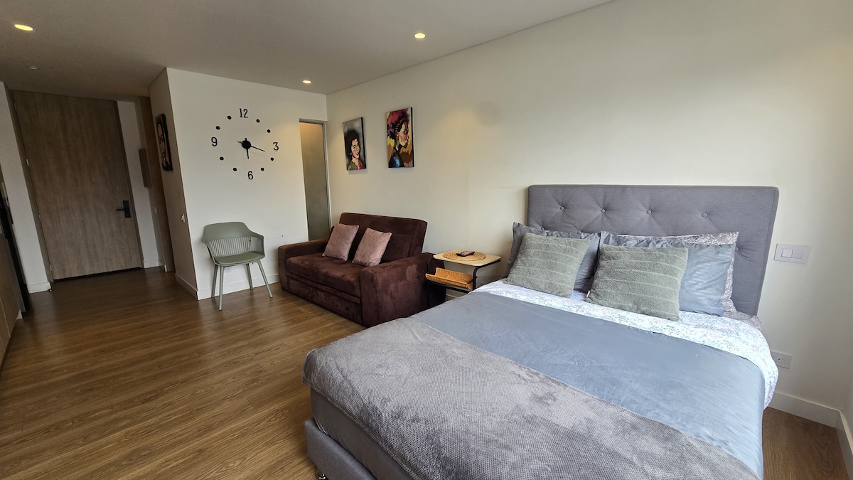 Recently renovated charming Studio. This place is strategically located: close to markets, museums, San Martin Mall, Monserrate, La Candelaria, La Plaza del Perseverancia, la Calle Bonita, National Park International Center (Financial zone), and countless restaurants, bars, and cultural activities that will make your visit to the city, an unforgettable experience. The building has a gym, coworking, pool area, and BBQ terrace on the top floor 360 View.