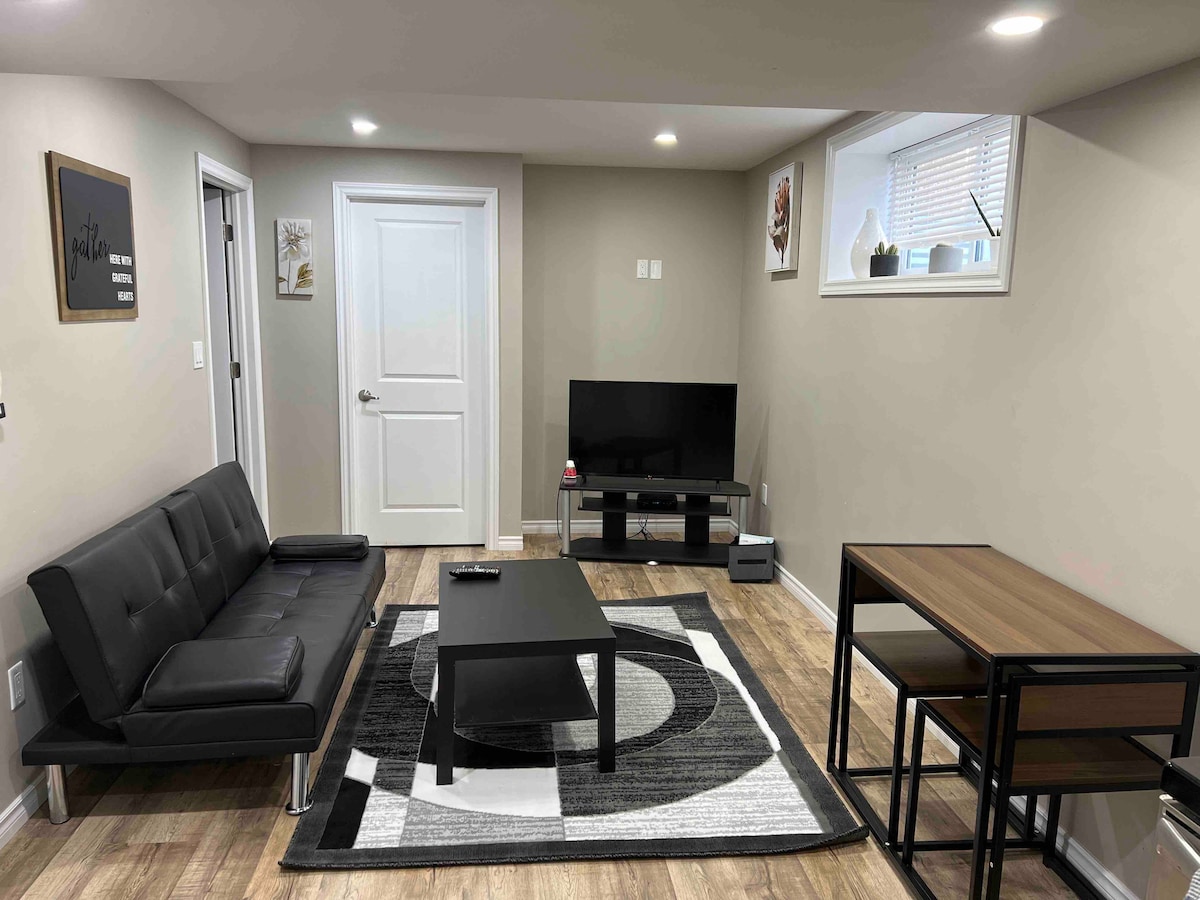 Hermosa, exquisita y libre de humo suite ubicada en uno de los barrios más seguros de Saskatoon. Ubicada a solo 4 minutos en coche de los principales restaurantes y tiendas, incluyendo: ☞ Starbucks. ☞ Tim Hortons ☞ McDonald's ☞ Dominos Pizza ☞ Sobeys Entrada independiente para tu privacidad y registro de entrada sin contacto. ¡Calentadores de zócalo en todos los espacios! Ya sea por una noche o un mes entero, ¡estamos seguros de que disfrutarás de esta suite privada!