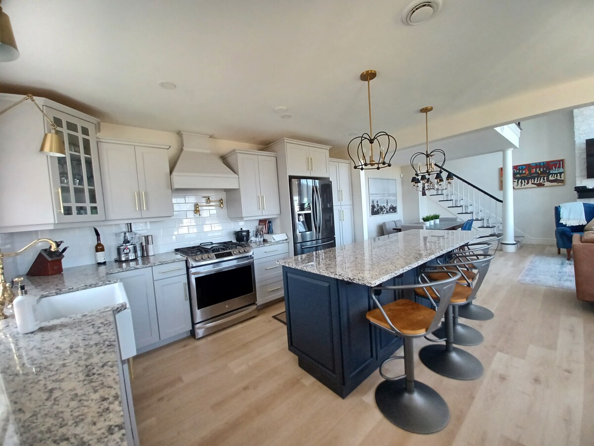 ¡Impresionante casa con hermosas vistas al mar ubicada cerca de los principales destinos turísticos! Disfruta de esta casa de 4 dormitorios más estudio, que ofrece 3 camas tamaño queen, una doble, una cama individual y una cama de día doble con canapé. Tener una terraza en la planta superior e inferior con vistas al mar es una característica verdaderamente notable. A 10 minutos de la playa de Parlee en Shediac. A 5 minutos de la playa de L'aboiteau en Cap-Pele. Delicioso camión de comida a poca distancia a pie. Gasolina/comestibles/alcohol a 2 minutos en coche.