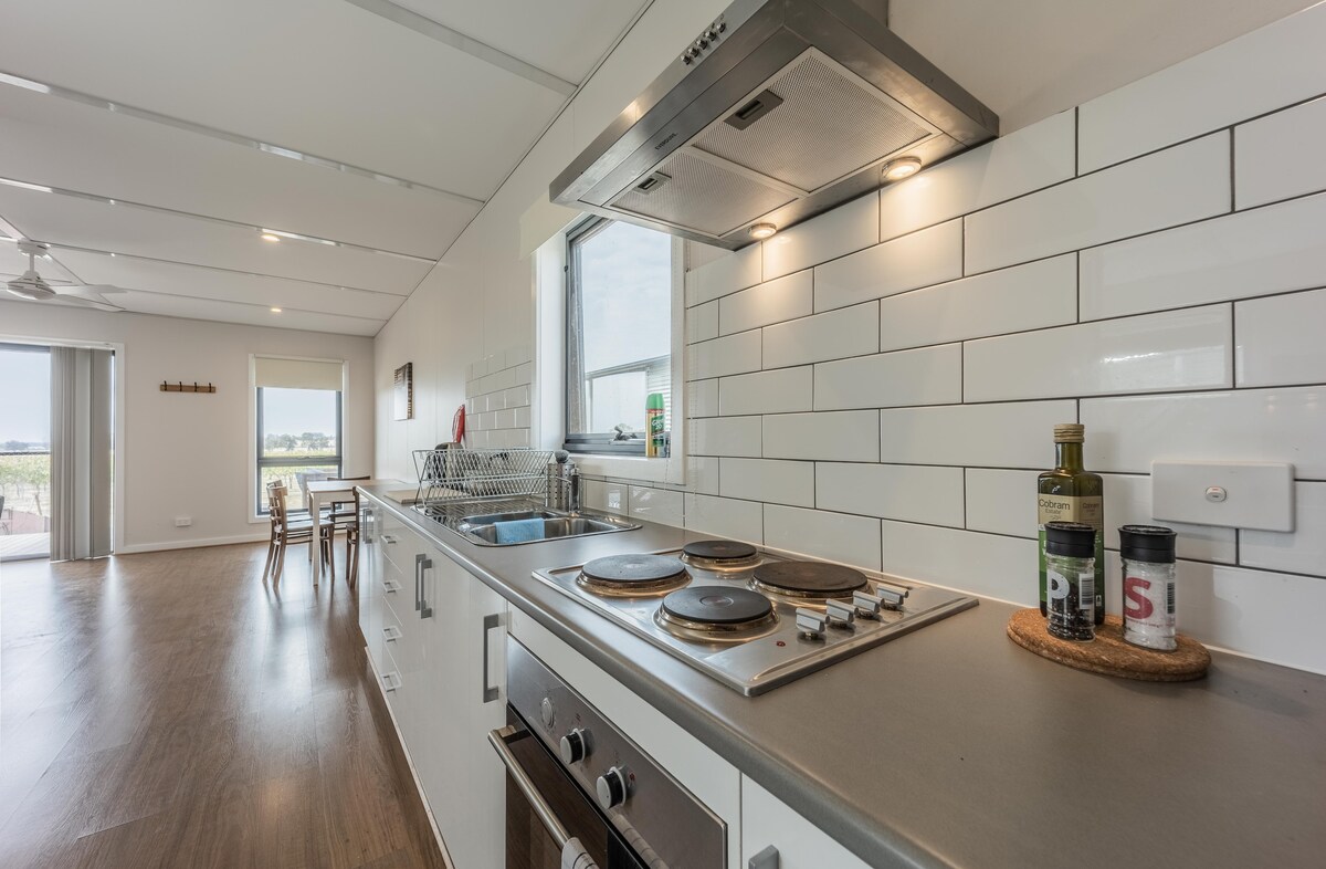 Alójate entre las viñas en Vineyard Views, la bodega boutique de Shiraz Republic. Esta cabaña independiente de 1 dormitorio cuenta con una terraza privada, una cocina completa, baño y sala de estar con wifi gratuito. Situado a pocos pasos de la puerta de nuestra bodega, tendrás a tu alcance nuestro vino, cerveza y pizza hechos en la granja, con música en vivo los fines de semana. Vineyard Views se encuentra en nuestra bodega y cervecería en funcionamiento, rodeada de las mejores bodegas de Heathcote y a poca distancia en coche de Bendigo, Echuca y Shepparton.