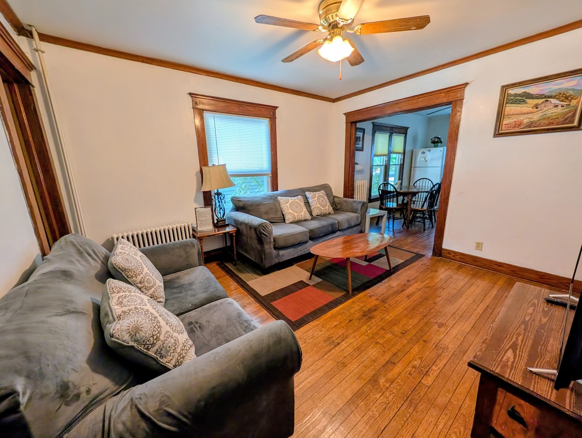 Disfruta de una experiencia con estilo en esta casa adosada idealmente ubicada en un barrio pintoresco, agradable y tranquilo. Bebe vino de Finger Lakes en el amplio porche cubierto, da un corto paseo hasta el famoso Gaffer District y Historic Market Street. Continúa tu paseo a través de un puente peatonal hasta el mundialmente famoso Museo del Vidrio de Corning. A 25 minutos de Watkins Glen y de las bodegas de Finger Lakes. Disfruta del encanto que ofrece esta joya oculta. ¡Tu espacio incluye todo lo necesario para que te sientas como en casa!
