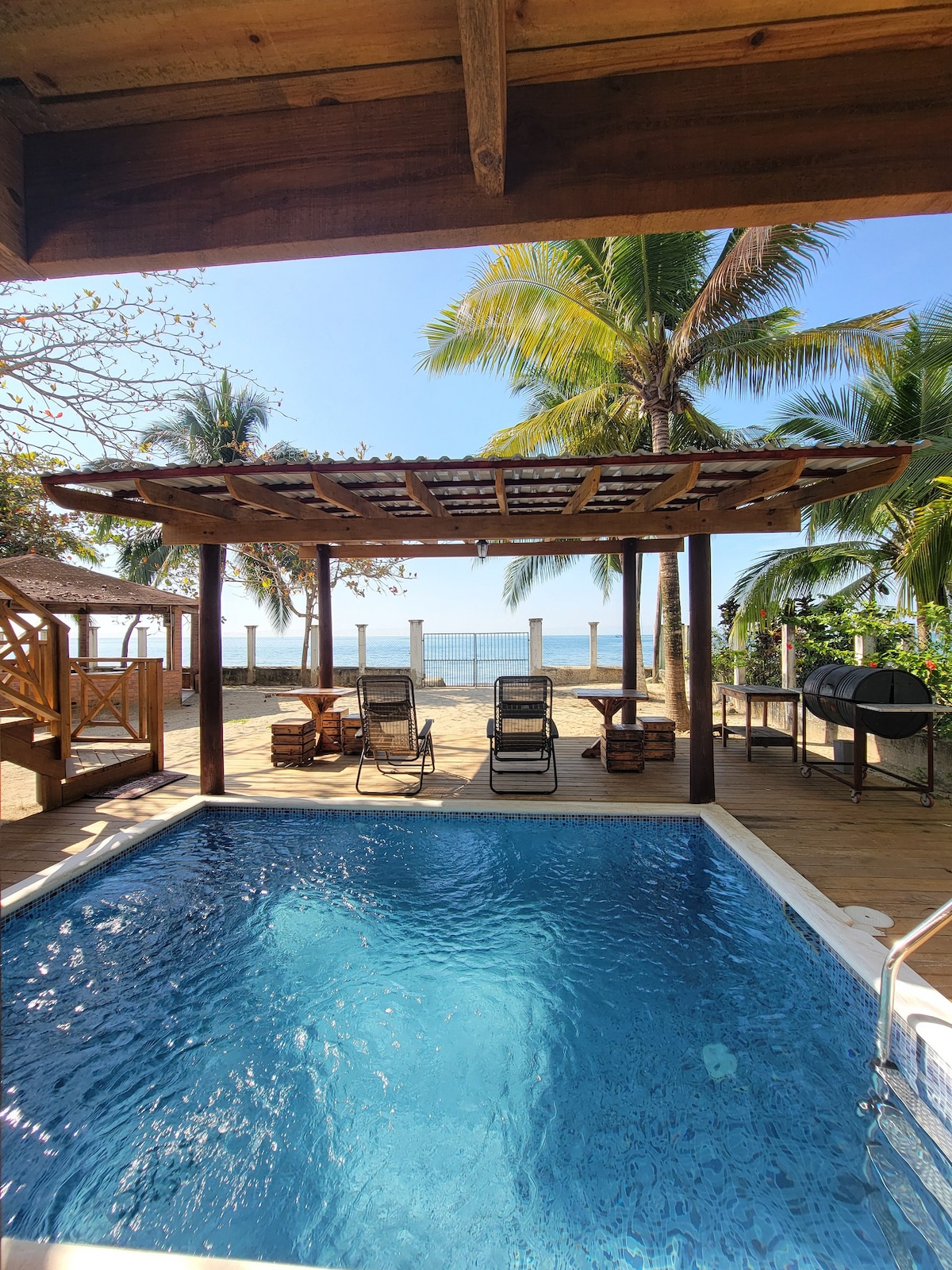 ¡Bienvenido a nuestro hermoso Airbnb junto a la playa! Ubicado en una comunidad cerrada a solo unos pasos de las costas arenosas, nuestro retiro ofrece vistas del océano y la costa. En el interior, disfrute de una decoración elegante, una cómoda sala de estar y una cocina totalmente equipada. Además, los huéspedes pueden relajarse en nuestro piscina privada o dar un paseo a tan solo 1 minuto de la playa.