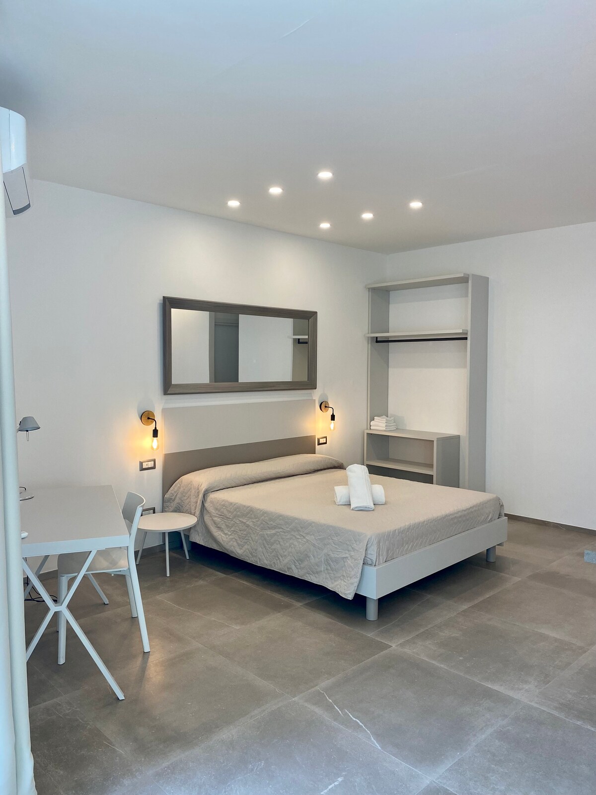 ¡Estudio bien equipado! Recientemente reformado, consta de una única sala de estar/dormitorio con cocina americana, además de un baño moderno y confortable, de tamaño adecuado. La cama doble, tamaño Queen, está equipada con dos mesitas de noche, un armario, un escritorio y un sofá que, bajo petición, se convierte en la segunda cama. Lavadora-secadora, lavavajillas, microondas, nevera y congelador, placa de inducción, cafetera y hervidor de agua. Que disfrutes de tu estancia en Olbia