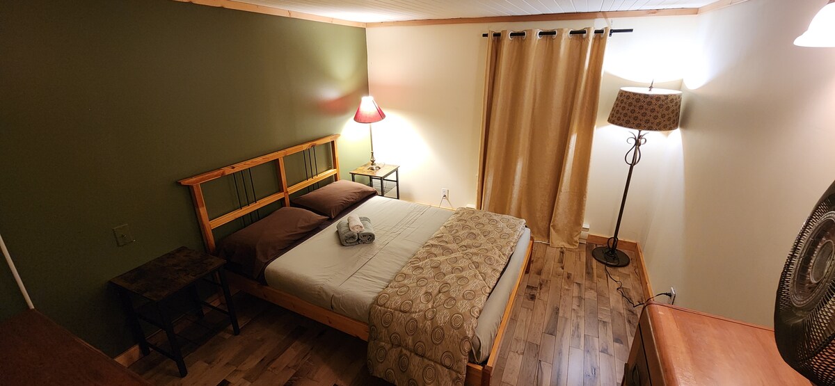 En familia, en pareja o con amigos disfrutará de la proximidad al centro de la ciudad de Rimouski con un spa cubierto. El alojamiento es accesible a través de una entrada independiente con 2 plazas de aparcamiento, encontrará 2 dormitorios (1 cama king y 1 cama doble), 1 salón con cama plegable doble, una zona de juegos para niños, una zona de teletrabajo, 1 comedor separado con chimenea de propano, 2 aparatos de fitness (bicicleta y cinta de correr), una cocina y un baño totalmente equipado.