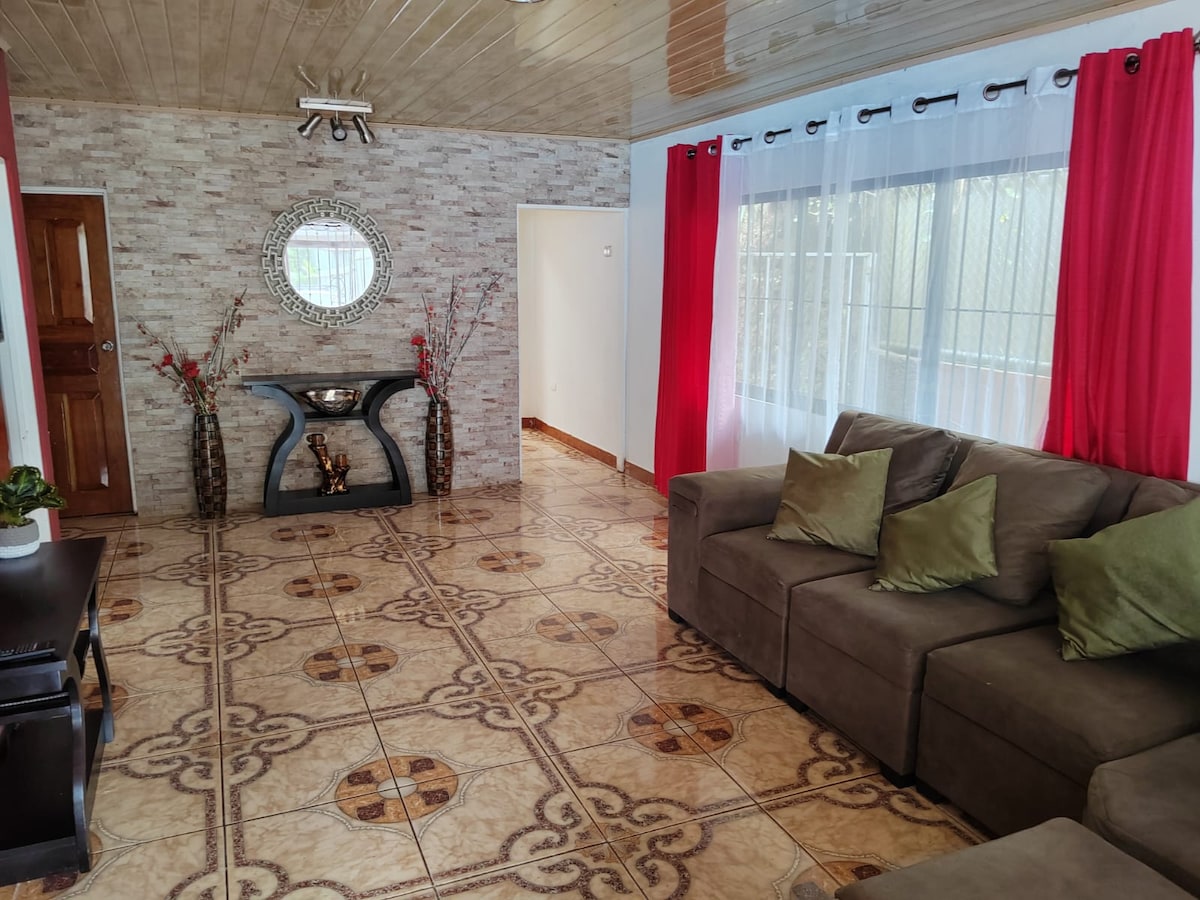 Tu familia estará cerca de todo cuando te quedes en este alojamiento céntrico. A la vez estas en un lugar lleno de naturaleza, privado con todas las comodidades. Ven con tu familia, grupo amigos y mascotas. Te ofrecemos una casa completame equipada con lo necesario para tu familia. De este lugar puedes llegar en 1 hora a Paso Canoas. En 30 minutos a la Union o Sereno. Y a Golfito en 1:40 m. Espacio perfecto para los que trabajan por medio de Teletrabajo. El Clima es Fresco. Te esperamos
