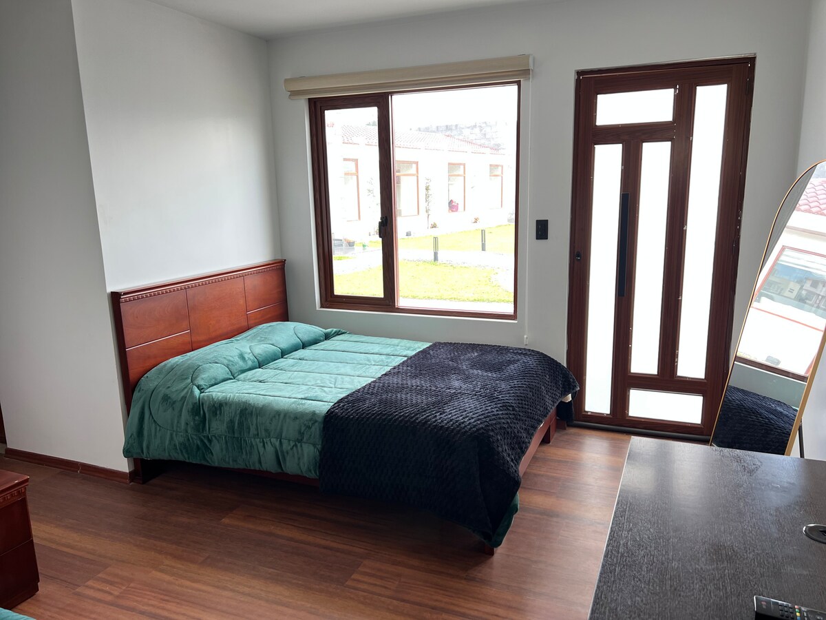 Habitación Matrimonial en el Centro de Píllaro Luminosa y acogedora, ideal para relajarte después de un día de turismo o trabajo. Ofrecemos: - Cama de 2 plazas con lencería frescay limpia, piso de madera cálido. - Baño Privado: Dentro de la habitación, con ducha de agua caliente y toallas limpias. - Ambiente: Un espacio tranquilo, con excelente entrada de luz natural. Conectividad: WiFi disponible para que te mantengas conectado. Nos encargamos de que todo esté impecable para tu llegada.
