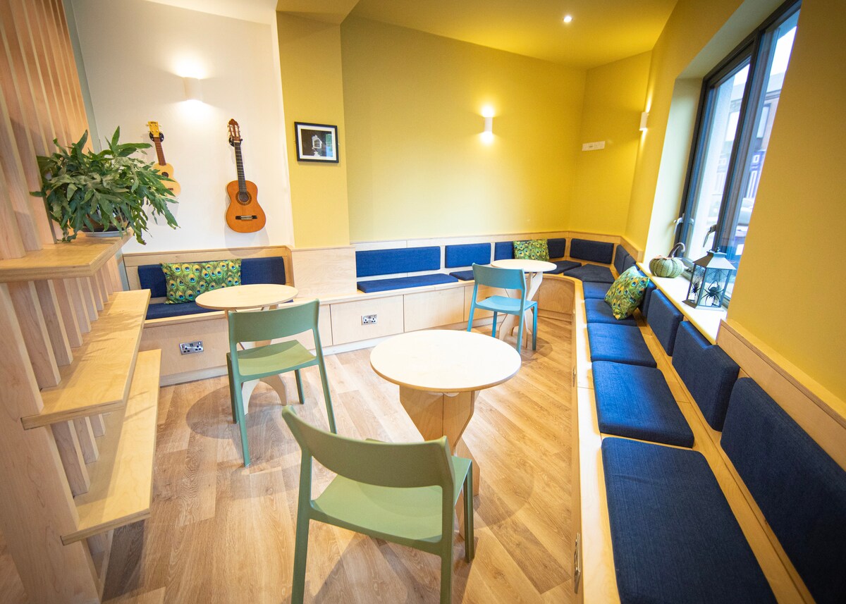 Heyday Hostel en Ballina, Co. Mayo, ofrece una espaciosa habitación familiar de 4 camas diseñada para mayor comodidad y conveniencia. Ubicado en el primer piso, este dormitorio privado cuenta con una cama doble y una litera, con capacidad para hasta cuatro huéspedes. La habitación incluye un baño privado, wifi de cortesía, luces individuales y puntos de carga. Los huéspedes también pueden disfrutar de acceso a una cocina moderna totalmente equipada y a una zona común luminosa y espaciosa e instalaciones de lavandería. Desayuno incluido.