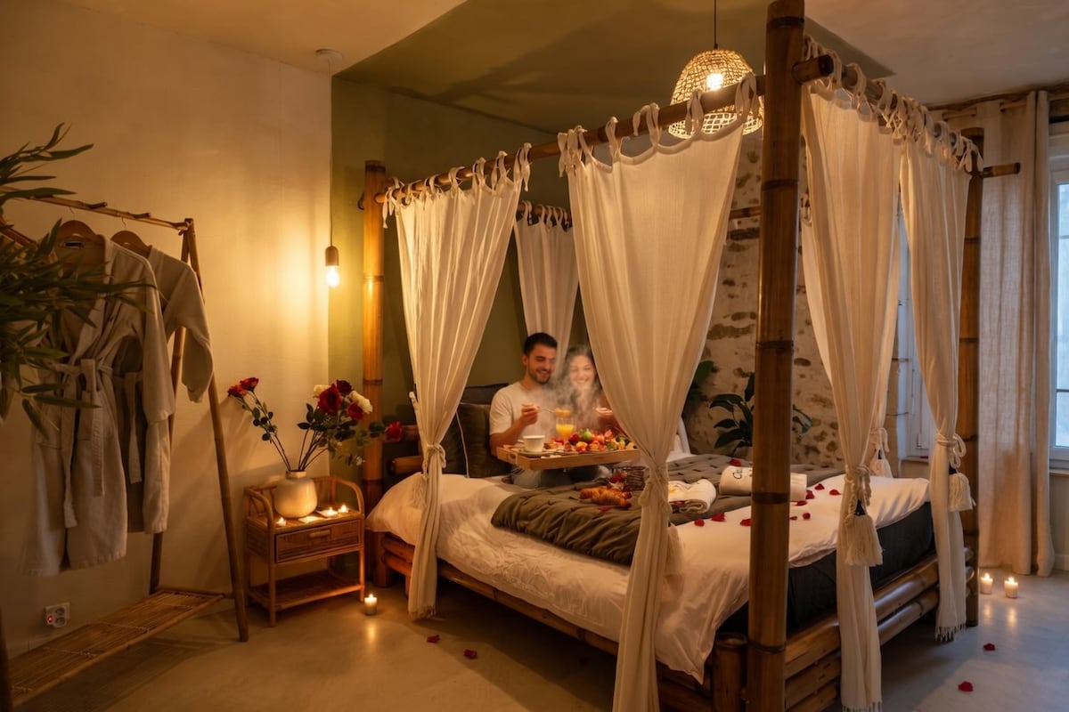 Looking for a unique getaway in the heart of the Loire Valley? Imagine yourself in Cour-Cheverny, just one kilometer from the château, in an authentic, renovated apartment inspired by Bali. Treat yourself to a comfortable king-size bed, a relaxing spa bath, a soothing sauna, and a projector for movie nights. With fast Wi-Fi and air conditioning, every moment flows effortlessly. For couples seeking to disconnect, this is an experience not to be missed. Book now: dates are filling up fast!