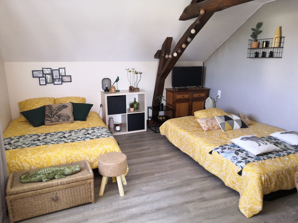 Este tranquilo alojamiento entre la ciudad y el campo ofrece una estancia relajante para toda la familia o con amigos. Disfrutará de una decoración con temática de zoológico/safari para el deleite de grandes y pequeños. Situado en el corazón del valle del Loira, nuestro estudio también se encuentra a 7 km del zoológico de la Flèche y a menos de 3 km del centro de la ciudad, lo suficiente para descansar directamente antes o después de sus visitas. Ponemos a su disposición juguetes/libros para niños, juegos de mesa y libros.