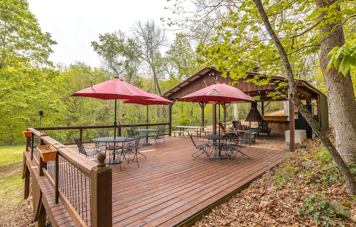 Bienvenido a nuestra hermosa cabaña de lujo en el bosque, más que un lugar para alojarse, es una experiencia inolvidable. Ubicado en 9 acres privados, este refugio personalizado de inspiración escandinava ofrece la combinación perfecta de comodidad y aventura. Si bien la propiedad cuenta con solo una cabaña de huéspedes más cerca, NO HAY SERVICIOS COMPARTIDOS, lo que garantiza que tengas total privacidad durante tu estancia. La cabaña está cerca de Onondaga State Cave Park, el río Meramec, excursiones en balsa, bodegas y restaurantes locales.