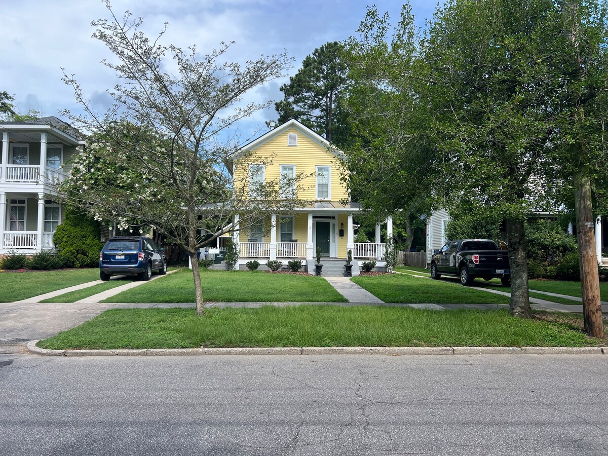 Una pequeña cabaña de 1 1/2 pisos ubicada en el distrito histórico de Edenton, a menos de 2 manzanas a pie de tiendas y restaurantes en Broad Street. Se encuentra en el patio trasero de nuestra casa entre jardines y un barrio tranquilo. Está a solo 4 manzanas a pie de Barker House, Cupola House, Waterfront Park y otros puntos de interés. Esta encantadora cabaña acaba de ser restaurada en otoño de 2019 con todos los suelos, paredes, calefacción, ventilación y aire acondicionado, baño, televisores arriba y abajo, muebles, etc. Algunas características de cocina limitadas.