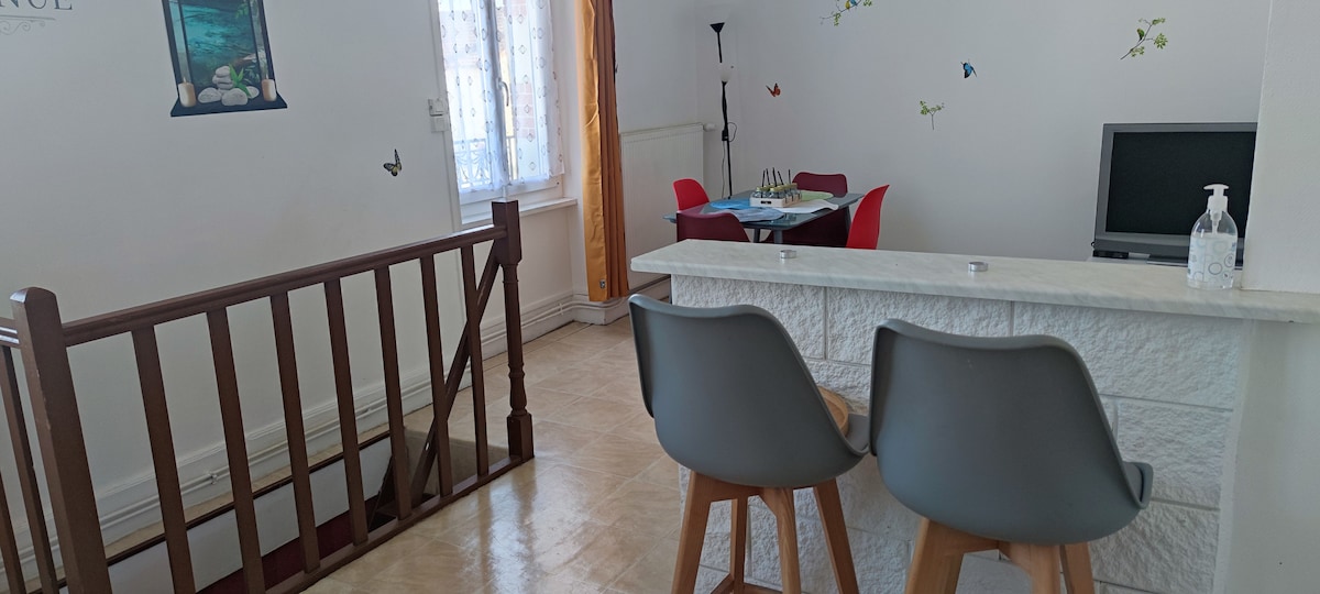 Descubra nuestro dúplex luminoso y elegante, perfecto para una estancia. Acogedora sala de estar con sofá cama, TV y WiFi. Cocina equipada. Habitación acogedora en la planta baja con baño moderno (se proporciona gel de ducha). Sábanas, toallas incluidas. Estacionamiento gratuito frente al edificio. Zona comercial a 3 min: restaurantes, tiendas, hipermercado. Llegada autónoma gracias a nuestra caja de llaves. ¡Reserva rápido para una experiencia única!