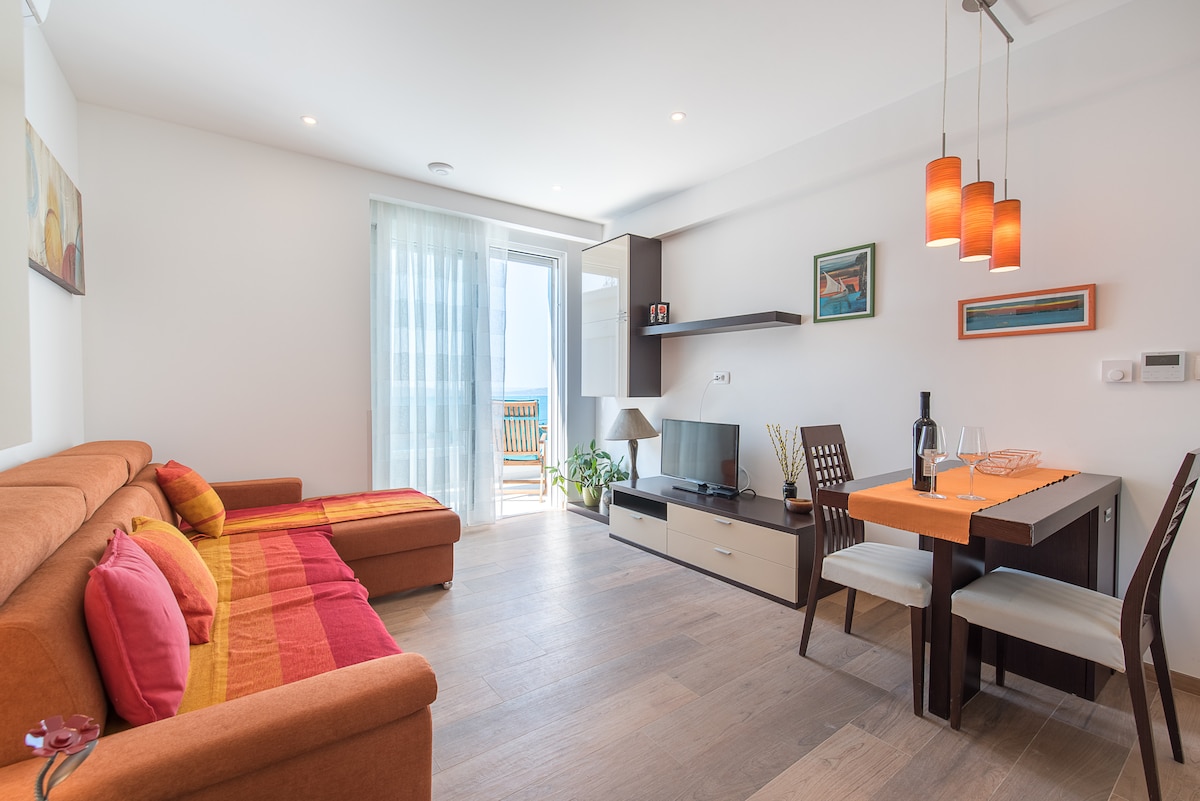 El departamento Slow Living es un nuevo departamento grande de 4 estrellas de 50 m2. Tiene un ambiente y un diseño mediterráneos. Puedes relajarte en nuestra hermosa terraza con impresionantes vistas al mar. El apartamento está perfectamente ubicado, a 50 metros de la playa más hermosa de la ciudad, Znjan. En 3 minutos, estás en la playa. En Uber se tarda 10 minutos en llegar al casco antiguo. También puedes alquilar una bicicleta cerca.