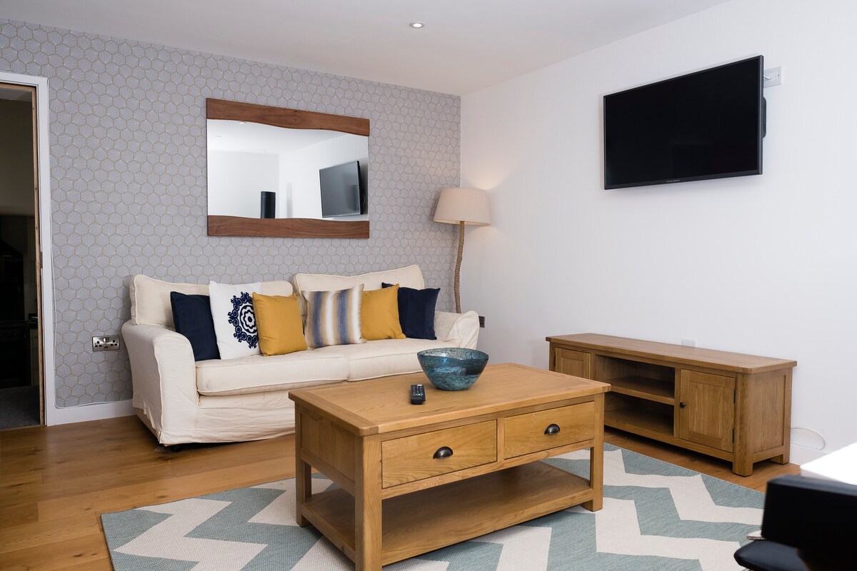 Driftwood @ Green Rooms is a contemporary and spacious one bedroom apartment tucked away in a quiet corner of the village just 5 mins walk from the heart of Croyde and a 10 min stroll from the beach. Sliding doors from the living area open onto your own private decked garden, a real afternoon suntrap. Perfect for settling down with a good book on the sun loungers or lighting the BBQ and grabbing a glass of something nice. A great nights sleep awaits you in the sumptuous king size bed.