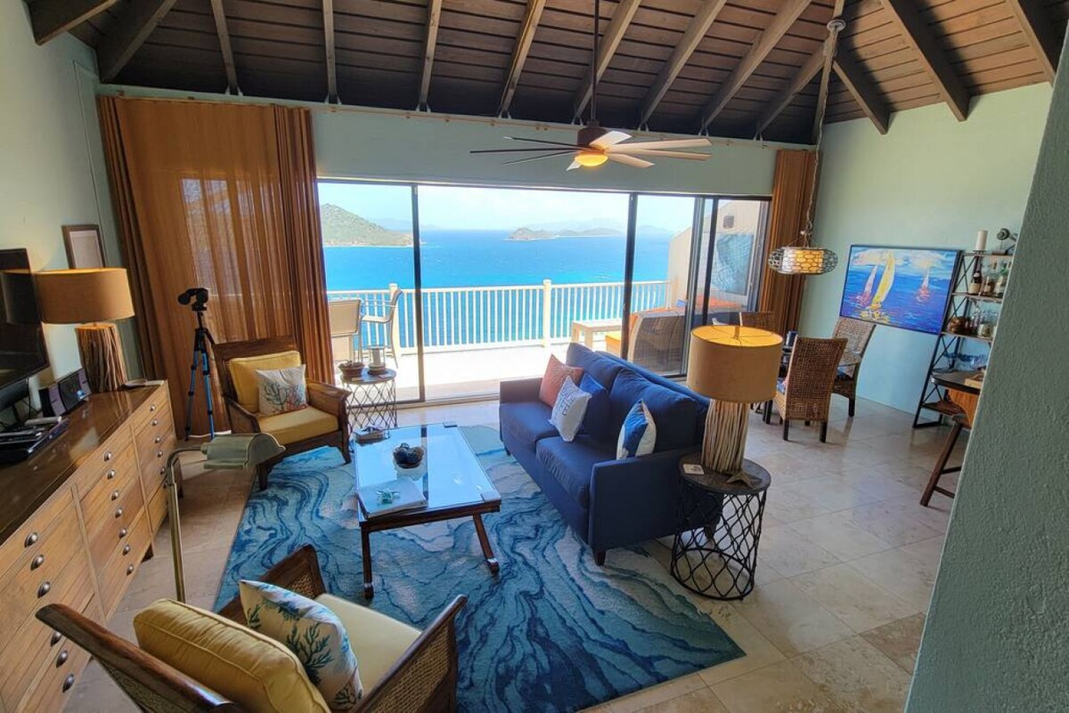 ¡Qué casa de vacaciones! ¡Vistas increíbles! ¡Recién remodelado! Bienvenido a C'est Jolie, unidad de esquina en la cima de una colina recién decorada con impresionantes vistas de St. John, Tórtola y Jost Van Dyke. La casa de vacaciones de 1 dormitorio/1 baño es tuya durante el tiempo que reserves. ¡Cada vez que entres te quedarás sin aliento! Muebles nuevos, pintura fresca, 2 aires acondicionados, 2 televisores que te harán sentir en la isla en un santiamén. Perfecta ubicación en East End junto a Margaritaville, a 2 minutos de Coki Beach y a 3 minutos de Lindquist Beach.