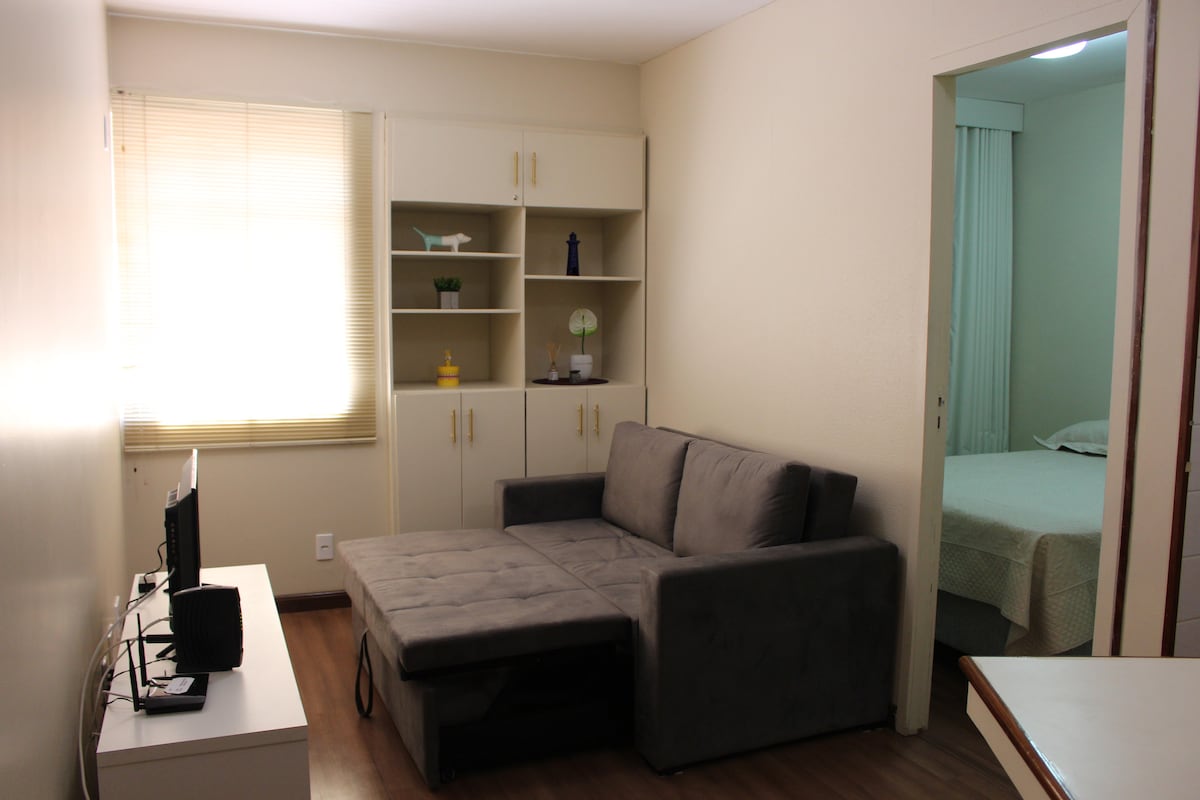 Venga a disfrutar de este estudio, diseñado para que el huésped tenga una experiencia increíble. El estudio es ideal para 1 pareja y 1 persona más. Con un área de 30m2, cuenta con: - TV con canales; WiFi; Sofá cama; Cama queen; Secador de pelo; Ropa de cama/baño; Espacio de trabajo; Cocina; Nevera; Microondas; Horno eléctrico; Plancha y tabla de planchar/Lavadora y secadora; Muy cerca de centros comerciales, restaurantes, Parque da Cidade y Parque do Bosque, bares, cines, hospitales y la Explanada de los Ministerios.