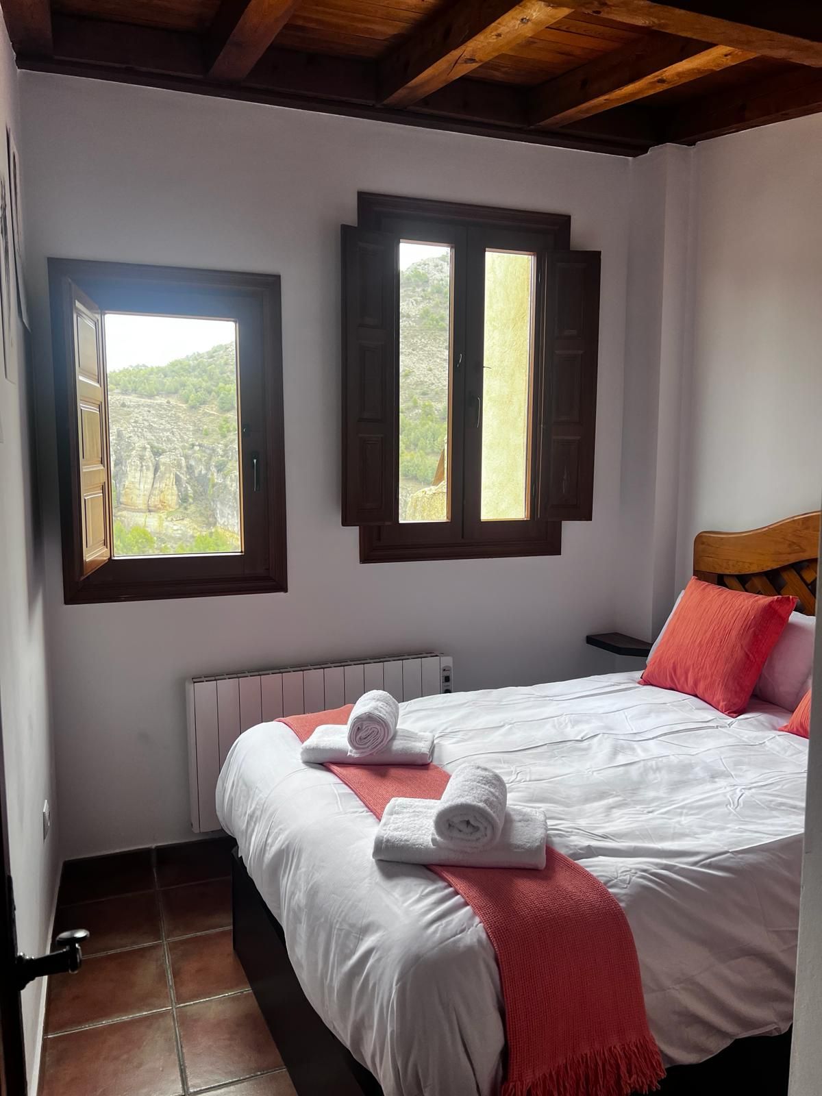 Este impresionante alojamiento de 94 m2 y techo de vigas vistas cuenta con un amplio salón-comedor y cocina totalmente equipada. Cuenta con dos habitaciones, una de ellas con cama de matrimonio y baño en suite y vistas a la Hoz del Huécar; y la otra, es una muy amplia habitación con dos camas individuales de 90 cm. Asimismo el alojamiento cuenta con un segundo baño completo para mayor privacidad del nuestros huéspedes.