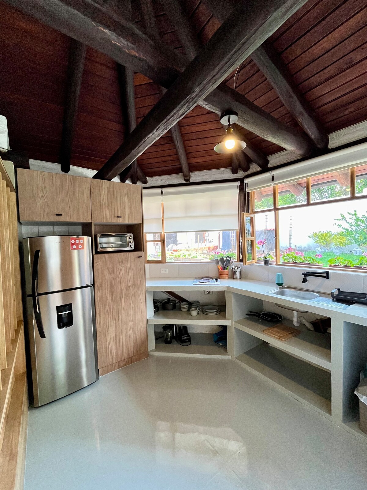 Disfruta de la sencillez de este alojamiento tranquilo y céntrico. Esta acogedora suite es ideal para un máximo de 4 personas que deseen hospedarse en un espacio rodeado de naturaleza, con huerta y árboles frutales, además es un espacio con excelente decoración e iluminación natural y completamente amoblado. Podrás tener todo esto sin alejarte tanto de la ciudad, en un barrio amigable a solo 5 minutos del parque central de Cumbayá, estarás cerca de todo!