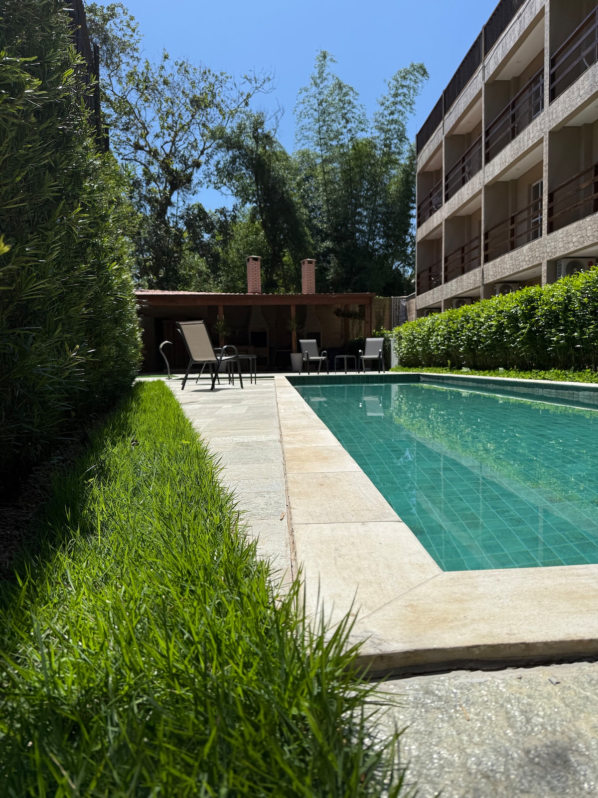 Casa en condominio cerrado, decoración rústica moderna y encantadora, a solo 7 minutos a pie de la playa y a 2 minutos de los principales restaurantes y SM. Rodeada por el verde de la Mata Atlántica, recién reformada, 3 plazas de aparcamiento, 3 suites dobles que pueden alojar cómodamente hasta 6 personas y 3 niños. La cocina es para aquellos que disfrutan de entretenerse con familiares y amigos mientras cocinan, ya que está integrada con la sala de estar muy amplia, barbacoa y piscina privada. Para los días fríos tenemos chimeneas y para los días lluviosos sala de televisión.