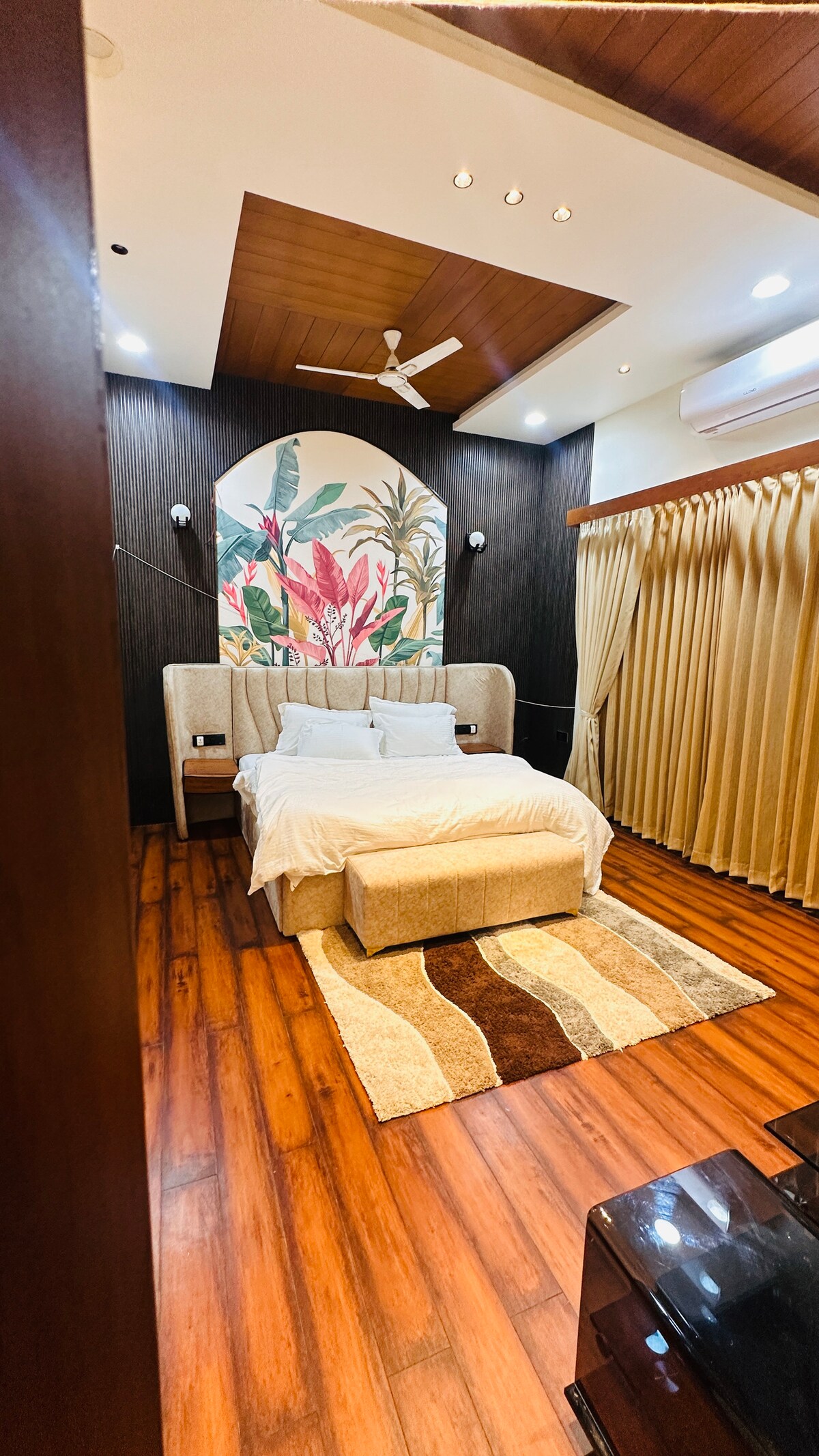 Trae a todos tus amigos y familiares a este gran lugar con mucho espacio para divertirse. - Todas las habitaciones grandes están equipadas con TV de 55 pulgadas. - Interiores espaciosos, limpios y bellamente amueblados - Una habitación con piscina privada de 225 pies cuadrados - Wifi rápido y TV inteligente. - Cocina totalmente equipada con artículos básicos - Agua caliente y aire acondicionado 24/7 - Balcón privado. - Aparcamiento fácil y seguro - Artículos de baño: Biotique Perfecto para parejas y familias que buscan una estancia elegante, tranquila y bien comunicada.