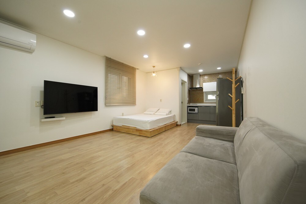 Hola. Somos Onda, que investiga y ofrece una variedad de espacios de descanso. Esperamos que todos los que se alojen aquí pasen un rato cómodo y feliz. [Presentación de la casa] Nuestra pensión, donde el amanecer es hermoso, recibirá a los clientes con un servicio más sofisticado con un interior moderno y elegante. [Tipo de habitación] Estudio (1 cama doble) + 1 baño * La ropa de cama se proporciona de acuerdo con el número de personas reservadas.