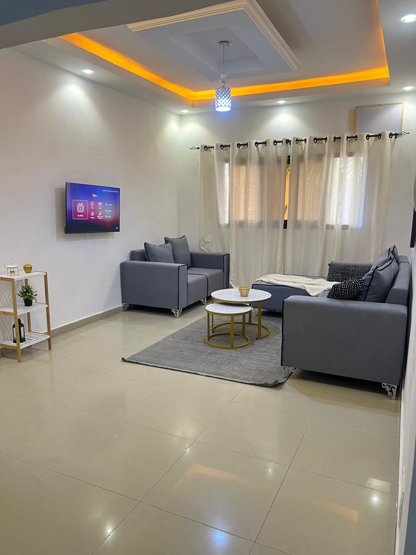 Fatastou está bien equipado en 150 m2 . Incluye: Tres (3) dormitorios, con camas y armarios, uno de ellos con aire acondicionado y los demás con ventiladores. Tres(3) baños. Cocina muy bien equipada Salón y comedor muy bien equipados, Balcones amueblados. Espacio familiar equipado. También se beneficia de: Cubrecamas y sábanas cambiadas regularmente en las 3 habitaciones, jabón, papel higiénico, servilletas, agua, platos, TV con suscripción a canales, Wifi