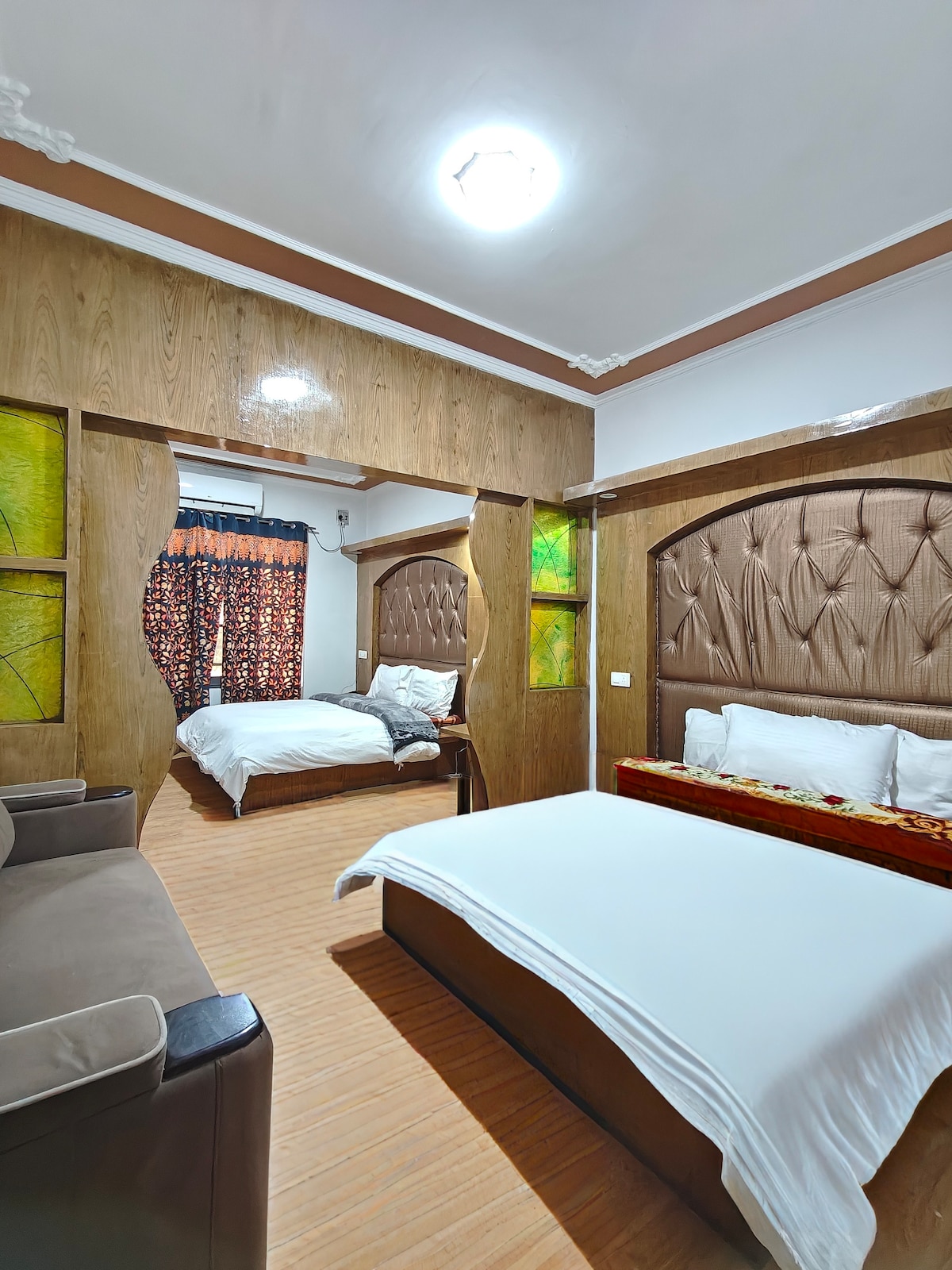 Tenemos una ubicación céntrica, en el corazón de la ciudad de Srinagar, Jawahar Nagar. TAMBIÉN tenemos 1BHK y 2BHK con ascensor. 🛗 ✨LO MÁS DESTACABLE: • Apartamentos/habitaciones con todos los servicios. • Secador de pelo. • Hervidor eléctrico. • Aire acondicionado frío y caliente. • Restaurante propio. • Servicios de taxi disponibles bajo demanda. • Aparcamiento gratuito. • Mercado a solo 50 metros ✨INSTALACIONES DISPONIBLES: • Recepción. • Servicio de habitaciones. • Desayuno (bufé/a la carta). • Almuerzo y cena (a la carta). • Comida 100 % VEGETARIANA PURA también disponible. • MENÚ de cocina variada.