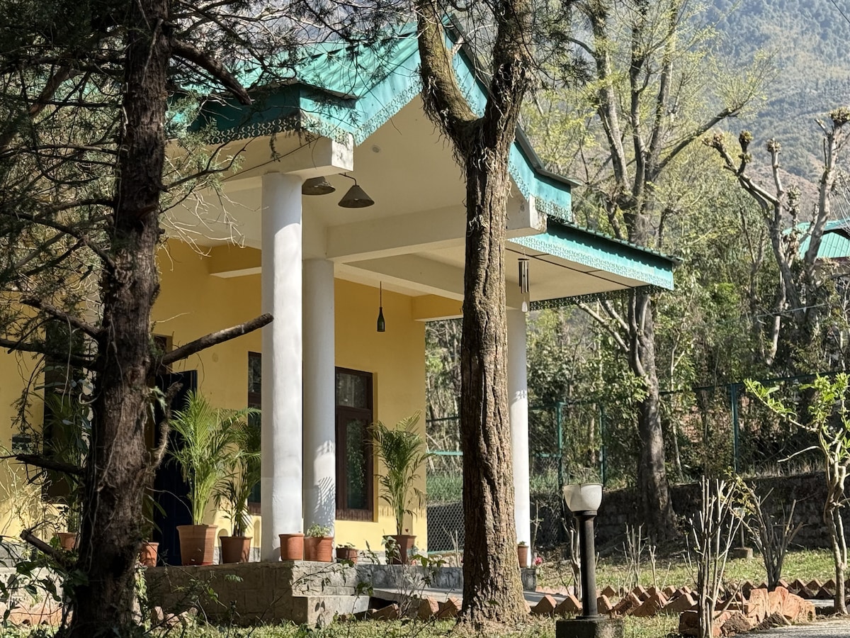 couple of miles away from mcleodganj just near the dharamshala stadium a family vacation villa made of real mountain stones with a scenic view of dhauladhar hills ,on the river banks with small pool for kids to enjoy , place for bon fire and BBQ ,and a kitchen to give you a homely feel.(non veg is not allowed ) Breakfast - 150/per person Lunch or dinner -220 / per person
