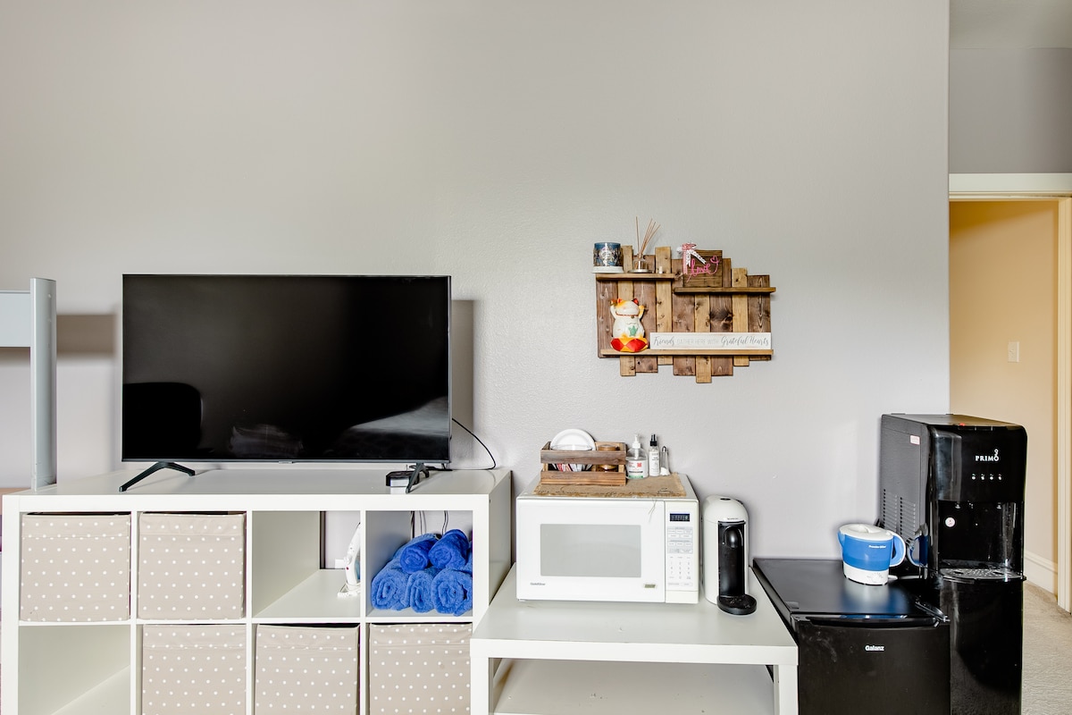 Ya sea que estés en el centro de Dallas por trabajo o por diversión, este elegante y elegante loft está lleno de casi todo lo que podrías necesitar para una estadía agradable. Ya está todo listo para tirar en la cocina bien equipada, hacer explotar el PS-5, negociar grandes ofertas en el escritorio con wifi de fibra de alta velocidad o pasar el rato en la deliciosa y cómoda cama tamaño king con increíbles vistas al paisaje urbano y el televisor de 55pulgadas. Maravillosos restaurantes, arte y entretenimiento están a pocos pasos de este único y al estilo de Tarantino. 🖤