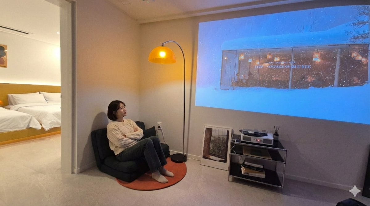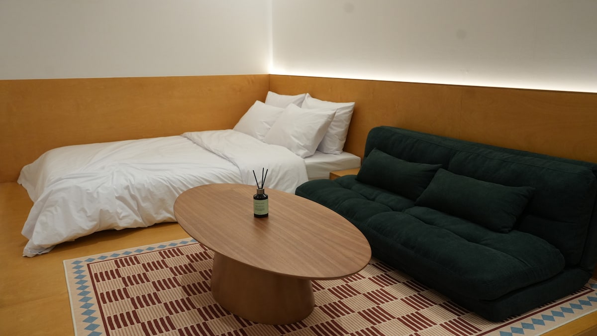 [오픈특가]7인실#동대구역숙소#감성숙소#신세계백화점#가성비숙소#호텔식침구#빔프로젝트#퀸침대