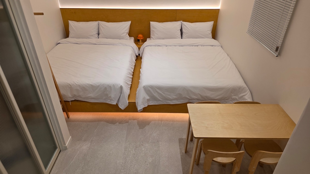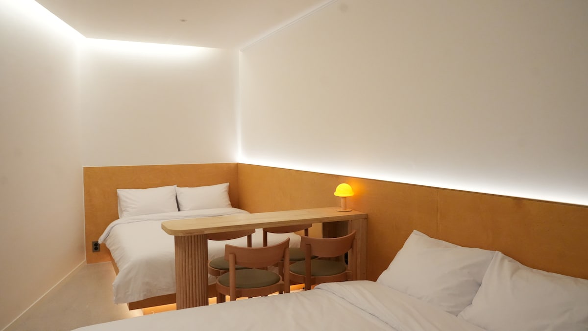 [오픈특가]4인실#동대구역숙소#신상가성비숙소#퀸침대#대구공항#신세계백화점#호텔식침구#퀸침대
