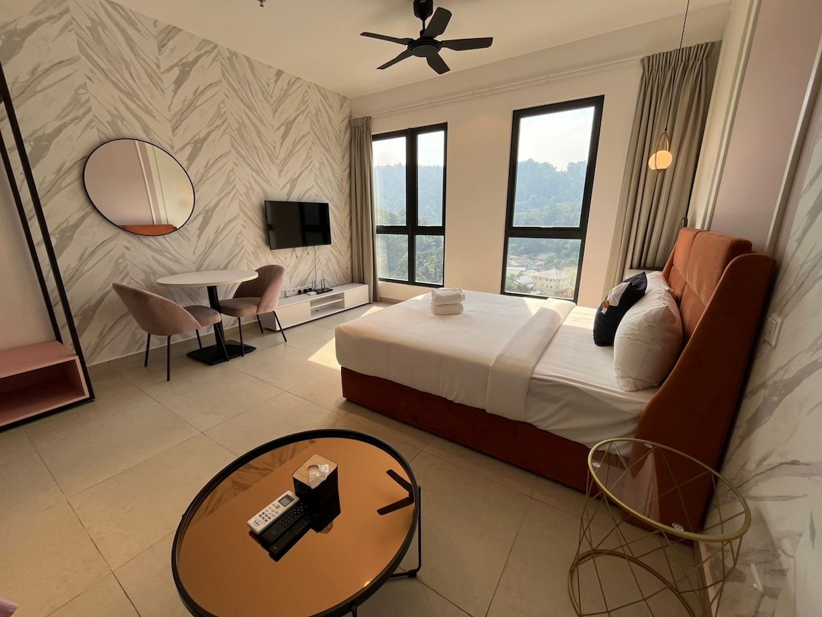 La suite Dreamy Romantic está ubicada en Scarletz Suites, en el centro de la ciudad de Kuala Lumpur. Está construido específicamente como un edificio dedicado a oficinas y tiendas, encontrarás las características e instalaciones esperadas, como aparcamientos, servicio de seguridad las 24 horas y espacios comerciales. Esto significa que las instalaciones adicionales, como estaciones de fitness, gimnasio, salón, piscina, salas de reuniones e incluso un pabellón, están disponibles y son convenientemente accesibles para los huéspedes.