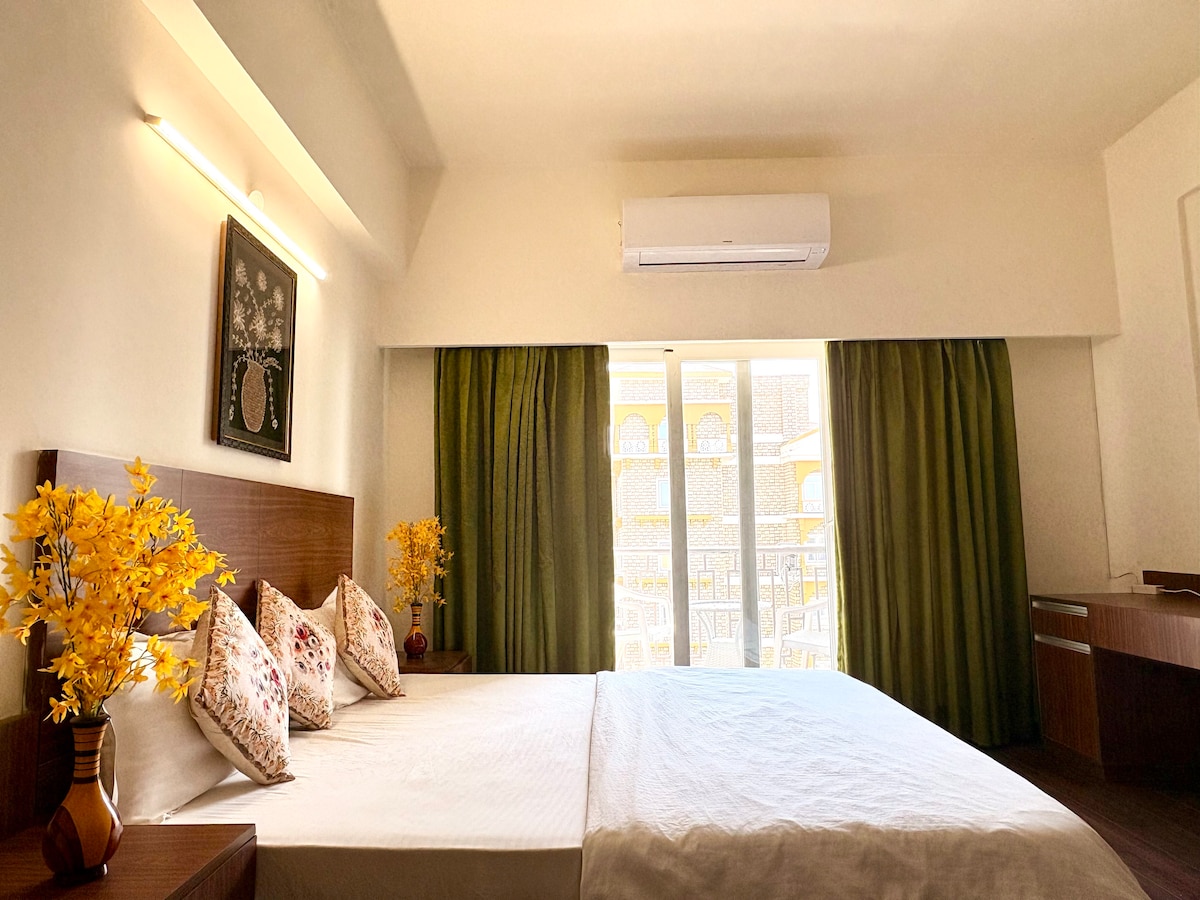 Bienvenido a Melody by AariaHomez, un impresionante apartamento de lujo familiar situado en el corazón de las montañas, perfecto para una escapada romántica o una aventura en solitario. El apartamento está a solo 10 minutos de Pacific Mall Rajpur Road y a 60 minutos de la reina de las colinas, Mussorie. - Cómoda cama tamaño king con sábanas de primera calidad. - Ofrece una pequeña cocina para tus necesidades culinarias. - Baño moderno con elementos esenciales incluidos. - Balcón privado para disfrutar del café por la mañana. - Smart TV y wifi de alta velocidad.