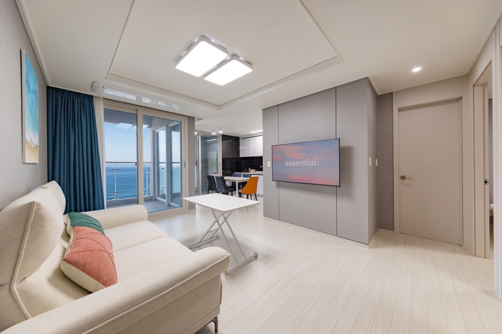 Apartamento con todas las opciones en la playa de Sacheon, Gangneung, vista media mar de dos habitaciones, descanso para familias y parejas, a 1 minuto a pie de la playa