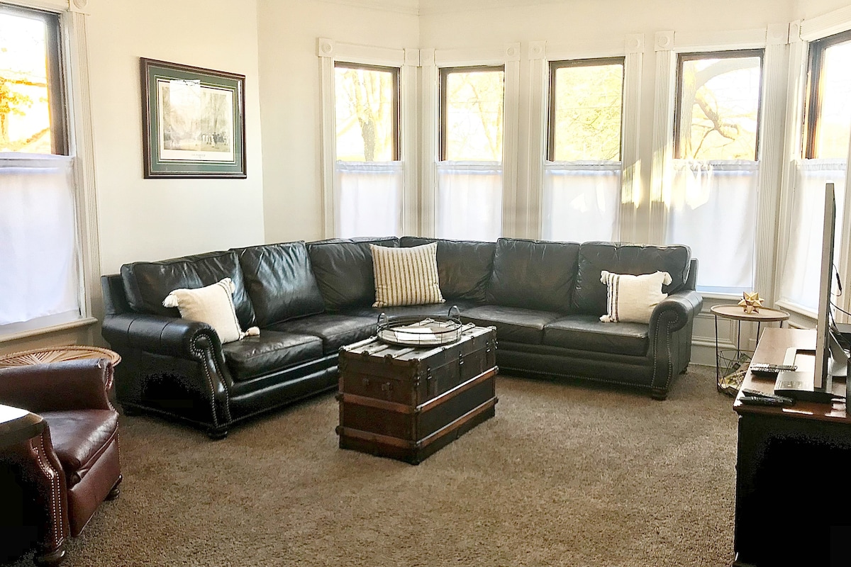 Una pintoresca escapada al campo con la comodidad de tener tiendas y restaurantes cerca. Si te gustan las cervecerías, los jacuzzis, el golf, pasear por el barrio en un carrito de golf Modelo T o simplemente relajarte en una casa realmente genial, ¡este alojamiento es para ti! Antigüedades y conciertos de verano al aire libre a pocos minutos. La comodidad te espera en hermosos interiores acogedores con un ambiente industrial vintage. Con un toque de historia y mucho encanto, tu estancia en «The Henry» será un refugio divertido y acogedor.