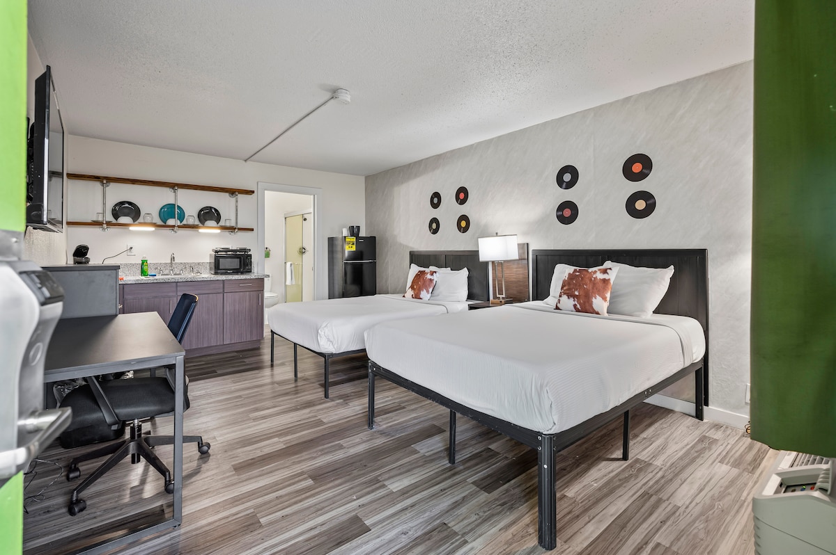 ✨ El Glamorous Speakeasy es tu pase de acceso total a un fin de semana en Nashville hecho como es debido. Empieza con mimosas en el balcón y luego vete a la piscina ☀️ donde las melodías country crean el ambiente. Cuando llega el momento de prepararse, la habitación glam ocupa un lugar central, sin necesidad de contraseña. El champán fluye, el micrófono está apagado y, antes de que te des cuenta, estás cantando a pleno pulmón y haciendo fotos dignas de Instagram en tu fotomatón privado. Ya sea una despedida de soltera o un viaje de chicas, así es como Nashville siempre estuvo destinado a ser.