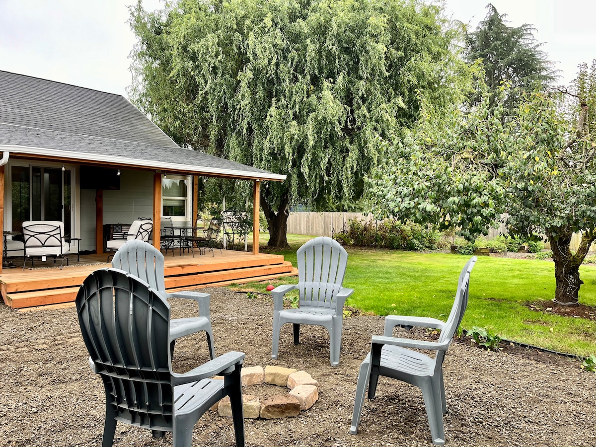 ¡Cerca de muchas bodegas, viñedos y restaurantes de Oregón! ¡Te encantará nuestro alojamiento por el barrio y la comodidad! Estamos justo enfrente del viñedo Stoller y a 3 puertas de la destilería Branchpoint, todo a poca distancia a pie. Ubicado en 2,5 acres con huertos de avellanas a un lado y vistas al otro lado de la calle de los viñedos. En el campo, pero lo suficientemente cerca de pequeñas ciudades y a 35 millas del centro de Portland. Si la cata de vinos está en tu agenda, ¡este es el lugar ideal para ti!