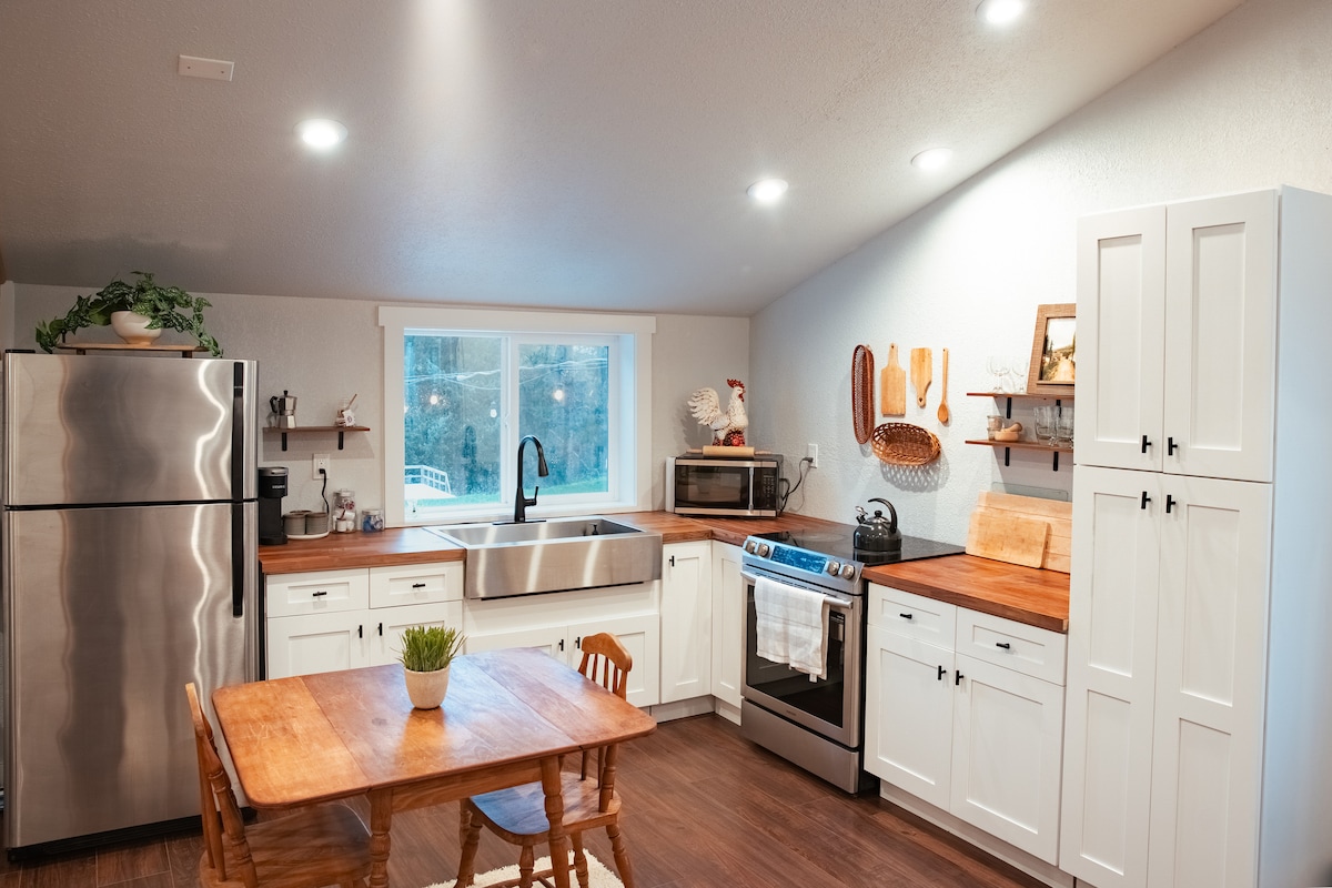 Esta suite actualizada es una unidad totalmente privada lista para disfrutar. Tu propia entrada independiente, una gran terraza con vistas al jardín y suficiente espacio para relajarte. A 10 minutos a pie del centro de Newberg con un ambiente rural. En el corazón del valle de Chehalem, a 10 minutos en coche de más de 50 bodegas y muchas zonas hermosas para explorar a mano. Diseñada para individuos o parejas.