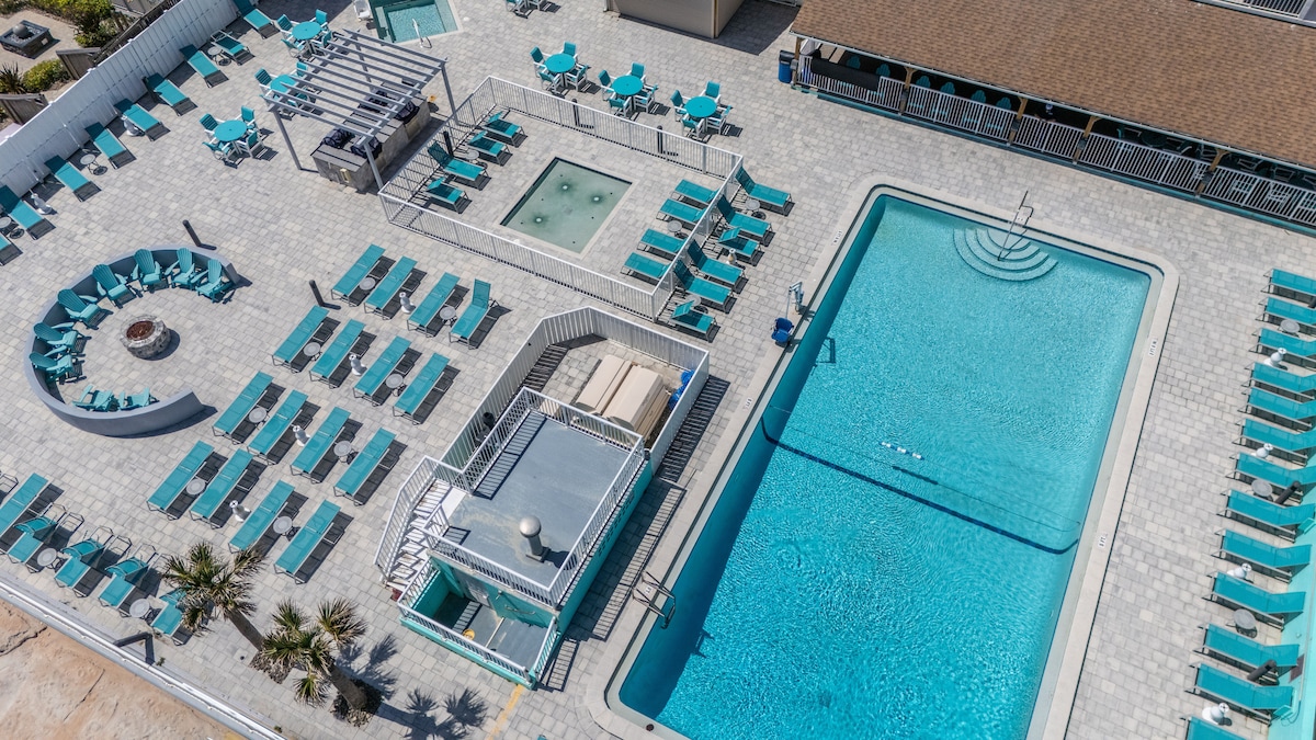 Wake up to the sound of waves in this oceanfront studio along Ormond Beach’s golden coast. A queen bed, sofa sleeper, and private balcony invite moments of pure relaxation, while a kitchen with cooking essentials adds easy comfort. Breathe in the ocean breeze, soak up the sunrise, or unwind by the pool. This bright, breezy retreat offers coastal charm with effortless tranquility for couples or small families seeking a peaceful escape.