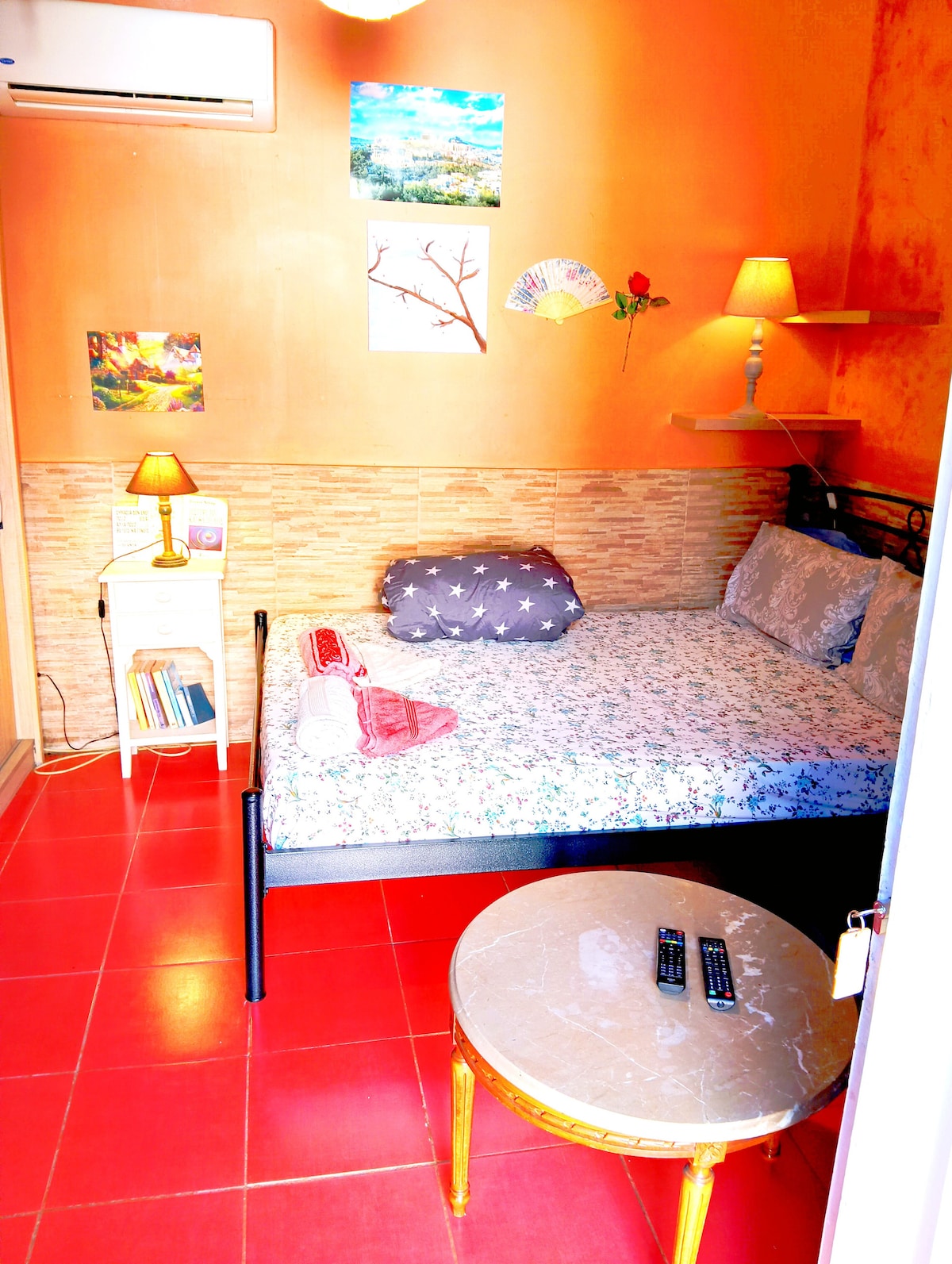Una encantadora sensación de verano para este espacioso apartamento con jardín. 1 dormitorio doble, sala de estar de planta abierta, cocina grande. Cerca de las colinas de Meteora con vistas panorámicas a la ciudad y las rocas. Ubicado en un lugar tranquilo y tranquilo. Muchas ventanas y luz natural del sol ~ disfruta de las vistas o da un corto paseo hasta el legendario sendero de senderismo Holly Trinity. Estamos a 15 minutos a pie del centro de la ciudad y a 15 minutos a pie del templo antiguo de la Virgen María María.