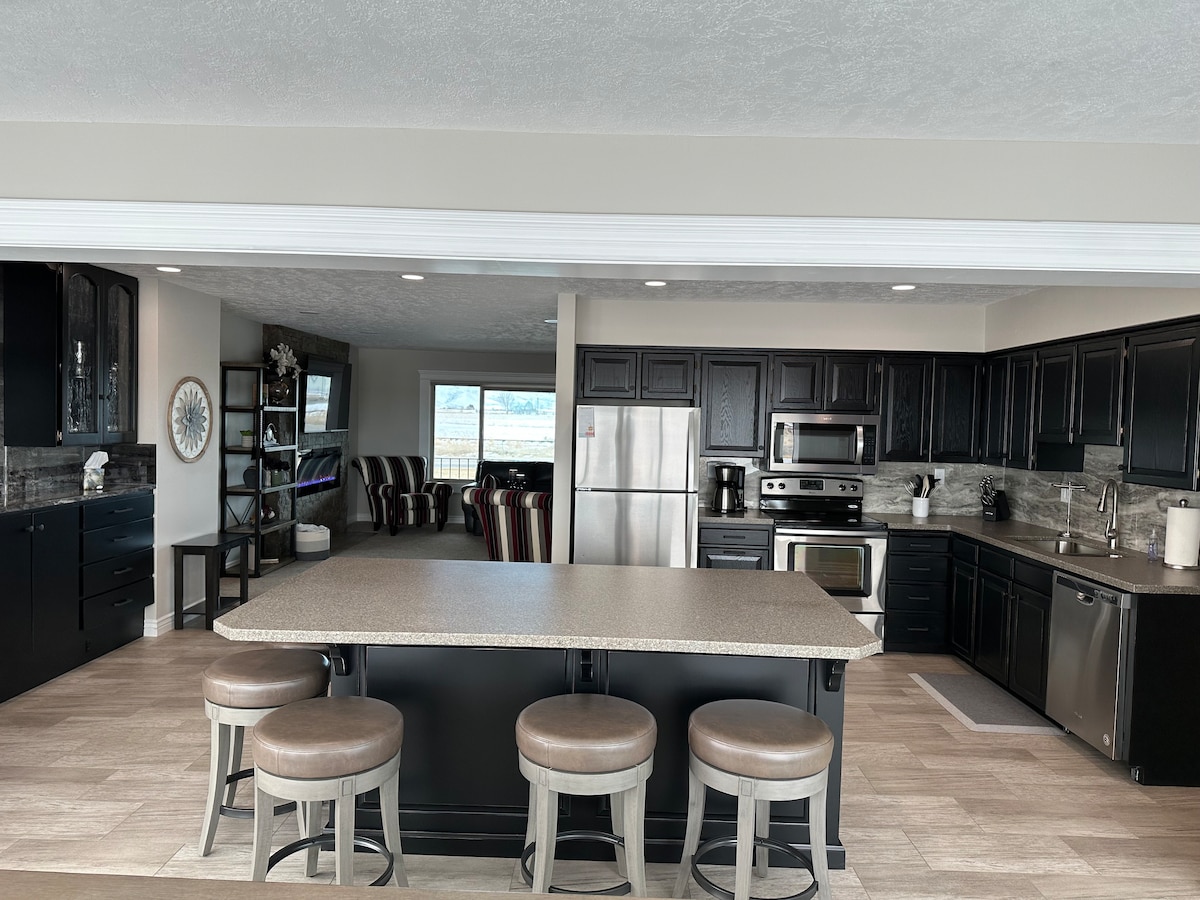 A ti y a tu familia os encantará esta escapada céntrica. Ya sea que vengas por trabajo o por placer, disfrutarás del esquí de nieve en nuestro hermoso Pomerelle Mountain Resort en la histórica Albion Idaho a solo 20 minutos de distancia. Disfruta de la vista panorámica del río Snake desde la cocina abierta o mientras cocinas en la terraza cubierta. A solo 2 millas al oeste por la autopista 81 se encuentra el campo de golf municipal de 18 hoyos Rivers Edge y el muelle de barcos, sede de la regata de barcos de Idaho que se celebra anualmente en junio, también el famoso Spud Man.