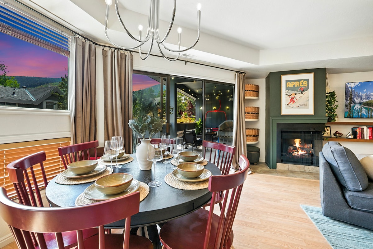 This beautifully decorated 2500 sq. ft townhouse in lower Deer Valley sleeps up to 10 guests in 3 spacious bedrooms, 4 full bathrooms and a bonus loft. 2424 Gilt Edge Cir boasts a fully equipped kitchen, large living room with fireplace and 50” TV, two king-bed suites, a secondary living room, and a private hot tub. A FREE Deer Valley shuttle picks up right from the driveway which offers incredibly easy access to/from the resort and there is a Park City Bus Stop 0.2 miles from the condo.