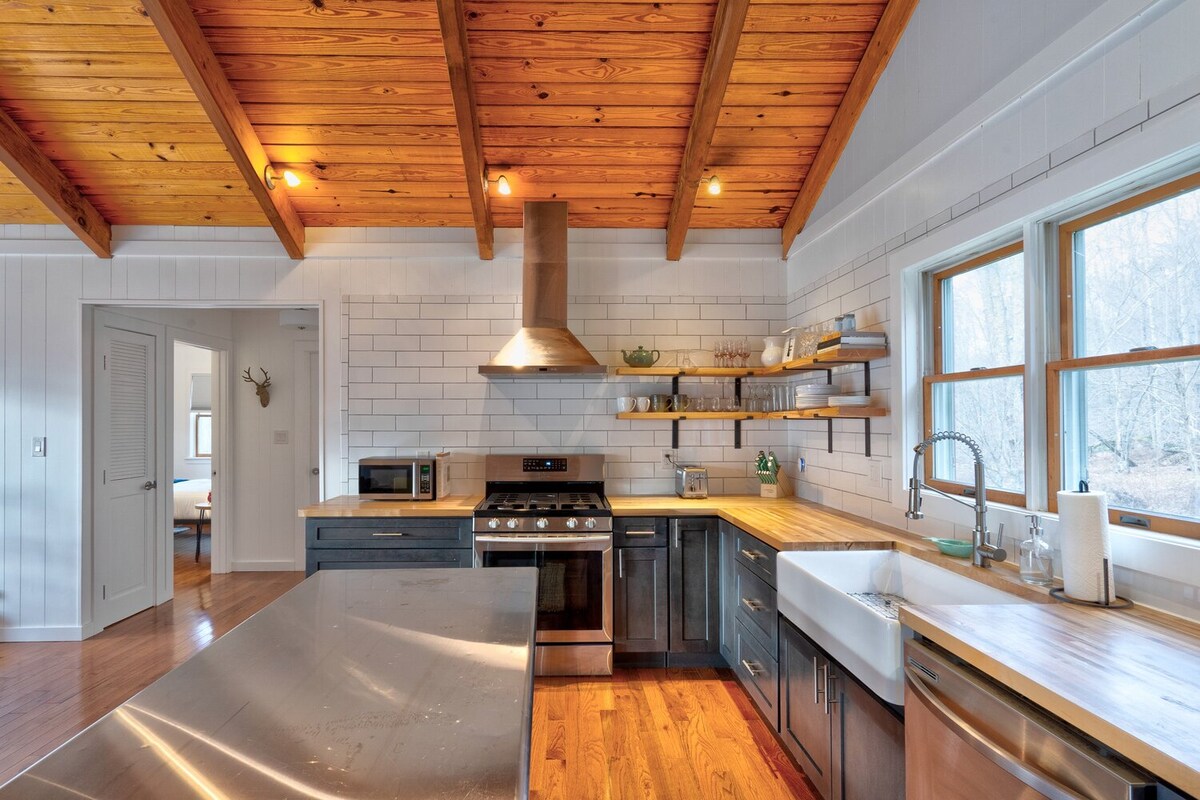 Two Ponds is your all-season retreat in the Catskill Mountains. This 22-acre property is designed to be an experience. With a spring-fed swimming pond, fishing nearby ski mountains, and vibrant fall colors, every season offers something special. Enjoy sledding, evenings by the fire pit, grilling, and yard games, and hiking. Two Ponds offers amenities for relaxation and for the adventure type. Note: this house doesn’t have AC but still stays comfortable.