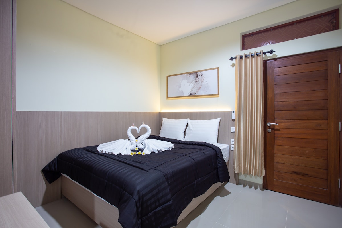 Una cómoda pensión con servicios cerca de Canggu y Kuta. Habitación tipo estudio de 15 metros cuadrados con baño privado e instalaciones completas como agua caliente, ducha, así como una cocina privada totalmente equipada con utensilios de cocina para que puedas cocinar tu comida favorita fácilmente. Dormitorio equipado con cama de 140x200 cm, aire acondicionado, escritorio, armario, TV Android de 32pulgadas, nevera y WIFI de alta velocidad. Fácil acceso a varios lugares importantes y de diversión