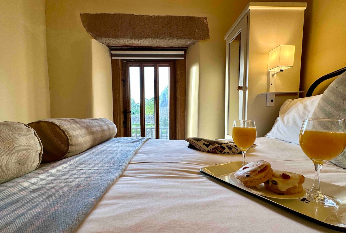 Pintoresco estudio de piedra en casa rural de campo Sala de estar: Zona de estar, sofá pequeño, estufa de leña, TV, cama victoriana con colchón Hypnos, ropa de cama de lujo y toallas incluidas para la casa. Persiana opaca y cortinas gruesas para un sueño tranquilo. Zona de cocina: Todos los utensilios proporcionados para tu estancia. Cuarto de ducha: Calefacción por suelo radiante, toallero grande con calefacción, toallas y consumibles incluidos, como papel higiénico, gel de ducha, jabón de hotel y crema corporal.