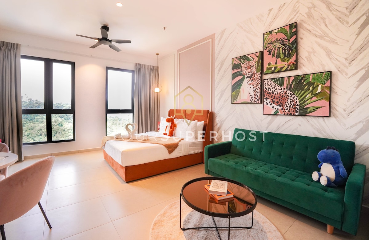 Por qué alojarse en la suite junior The Palm en Lucentia Residence - Las vistas de Kuala Lumpur. - Hermosamente decorada con un espíritu divertido. - Ubicación céntrica. - Cerca del transporte público. - Wifi rápido. - TV con Netflix, Apple TV y Prime Video. - 2 preciosas piscinas - Gimnasio, mesa de billar, zonas de barbacoa, piano. - Administrador superanfitrión. - Aparcamiento en garaje. - Recomendado para 2, máximo 3 personas. - El centro comercial LaLa Port y la calle de entretenimiento están unidos. - Supermercado, farmacia y muchos restaurantes están adjuntos. - Cine GSC al lado.