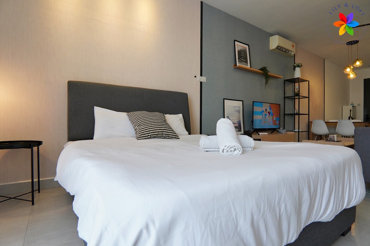 Our Grand Loft is packed with all sorts of amenities and facilities that you'll ever need! We are furnished with premium quality furnitures , entertainment unit (Karaoke) and exquisite finishing that gives not only more value but also your experience staying here. We are located just 15 minutes away from the CBD, 5 stops away from Bukit Bintang (Pavillion) & 6 stops away from KLCC by train. We are strategically located with a 4 minutes covered walk through the mall to the MRT station at lv 1