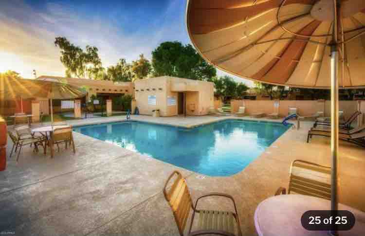 Ven a disfrutar de nuestro tranquilo complejo privado como condominio. Este hermoso apartamento en el segundo piso ofrece excelentes vistas al patio y al área de la piscina. Date un chapuzón en la piscina climatizada, sumérgete en una agradable bañera de hidromasaje o haz ejercicio en el gimnasio. Este apartamento tiene un bonito espacio abierto y ofrece botellas de agua, café, té y chocolate caliente de cortesía. Puedes sentarte en el patio sombreado para disfrutar. A pocos minutos de la 101 y la I-10, el estadio State Farm, las instalaciones de béisbol Camelback Ranch, hospitales, restaurantes, tiendas y mucho más.